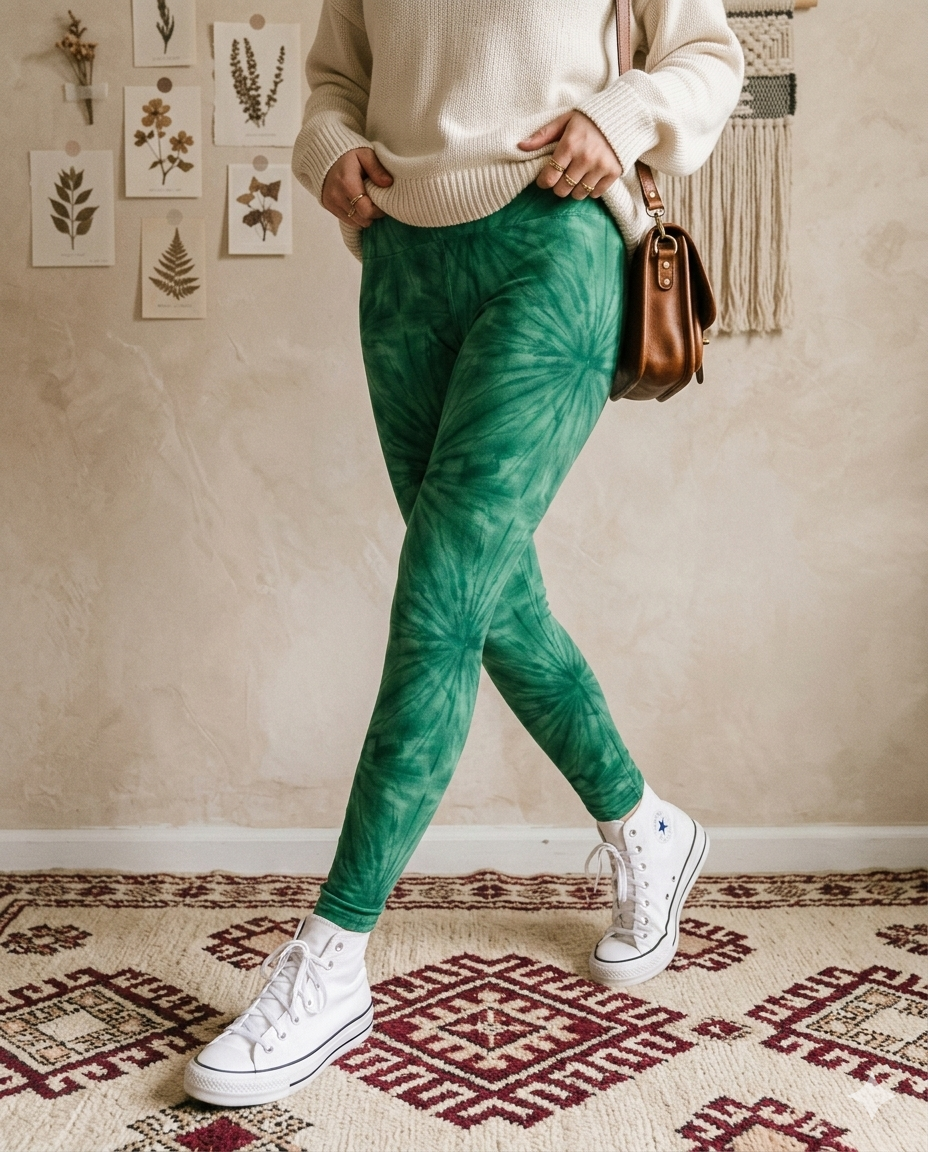 Emerald Green Sunburst Tie Dye Print High Waisted Leggings