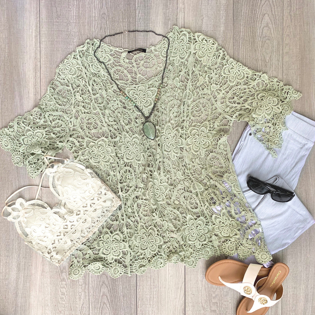Add a touch of femininity to any ensemble with this gorgeous floral print netted crochet...