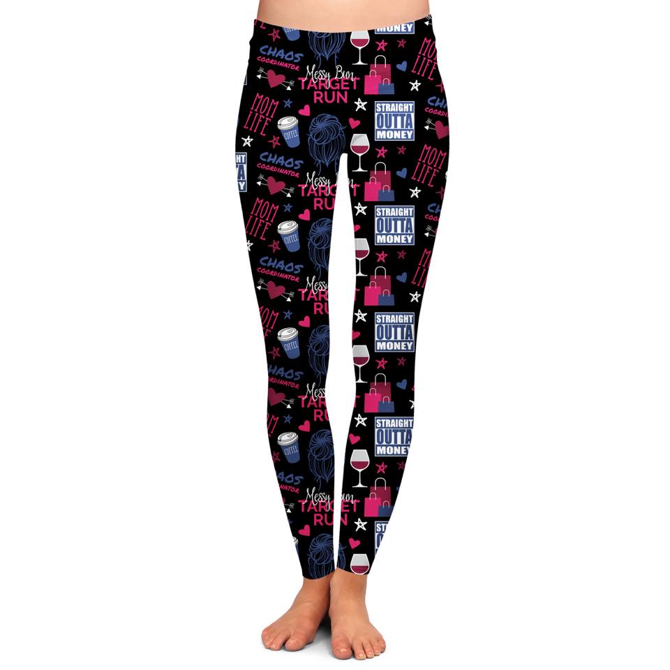 Straight Outta Money Mom Life Funny Print Soft Stretchy Black Leggings
