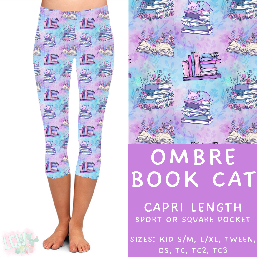 Ready to Ship - Ombre Book Cat Capri Length Leggings - OS Sport Pocket