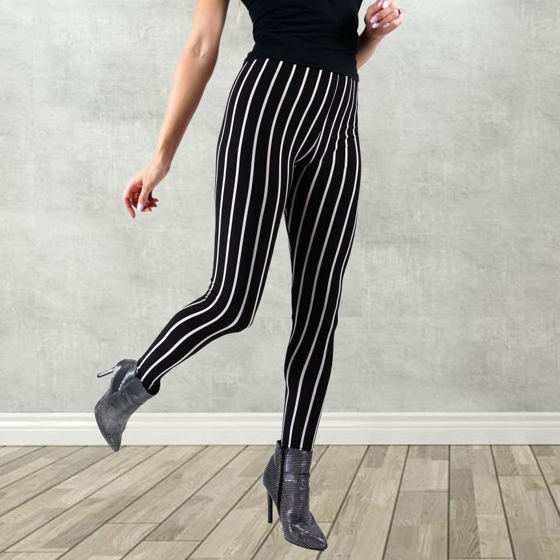 Pin Stripe Print Black Leggings