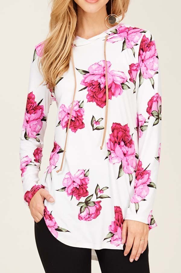 Description: FLORAL PRINT HOODIE TOP