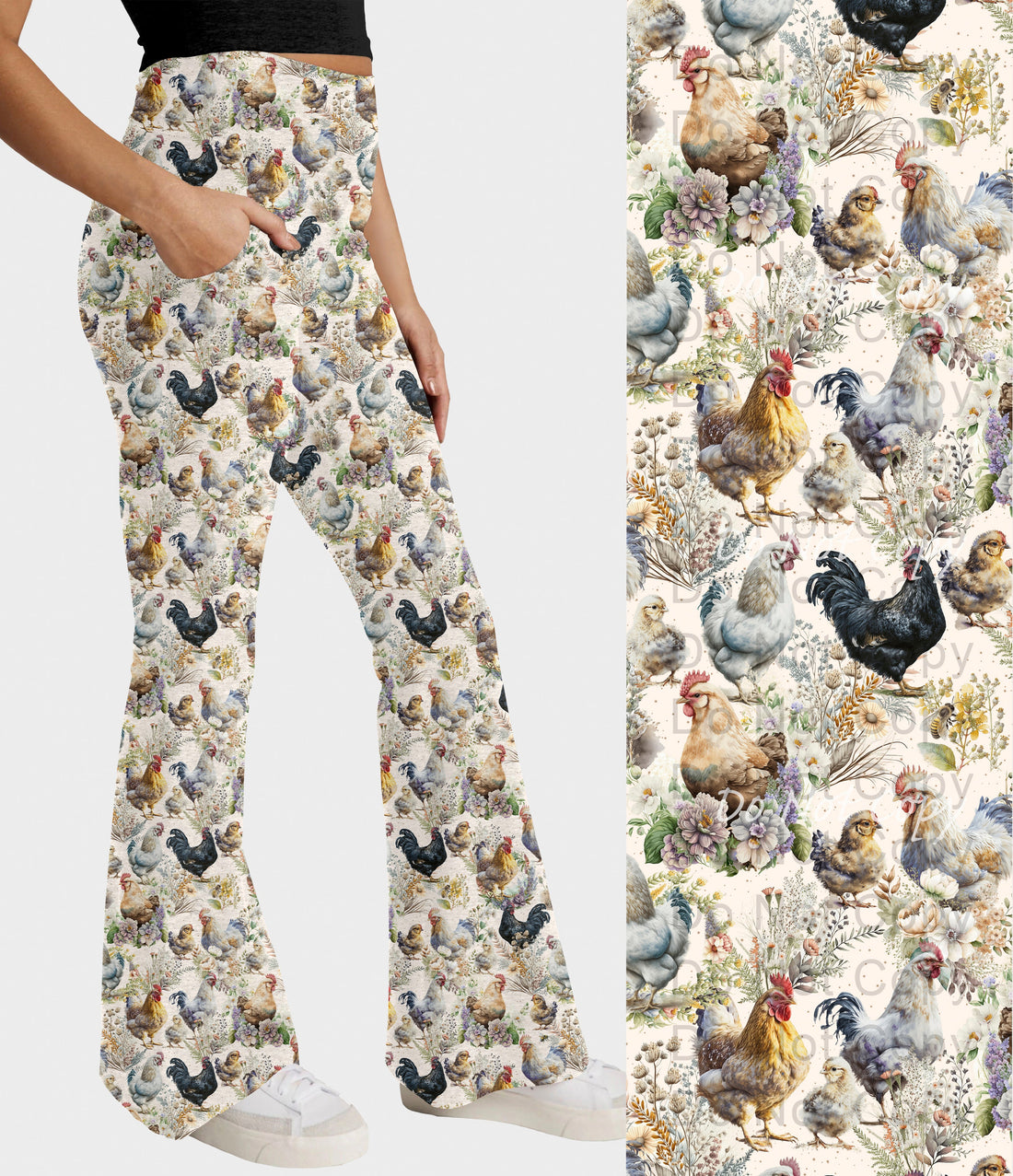 RTS - Cottage Chickens Flare Leggings w/ Pockets