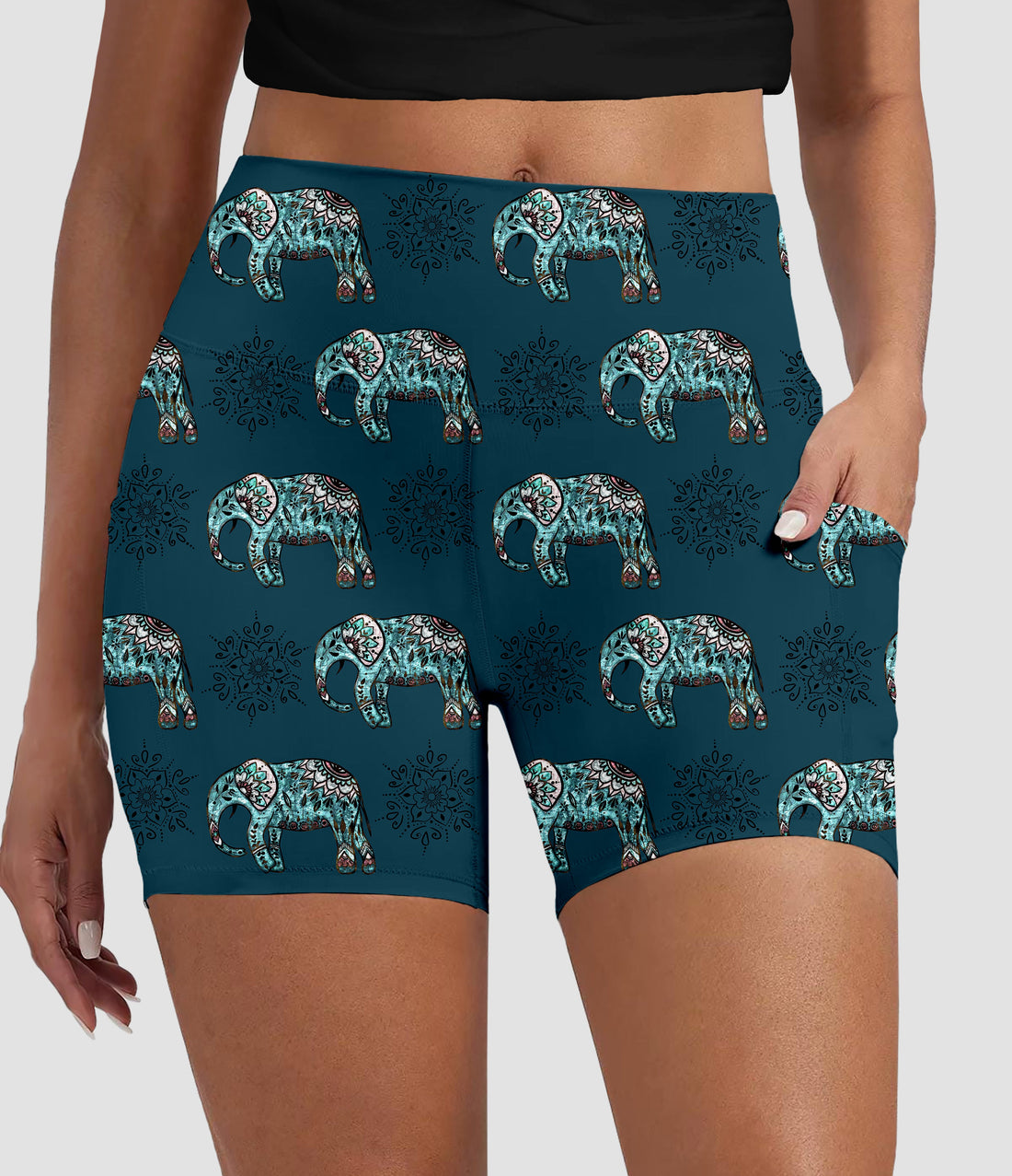 RTS - Mandala Elephants Biker Shorts w/ Pockets