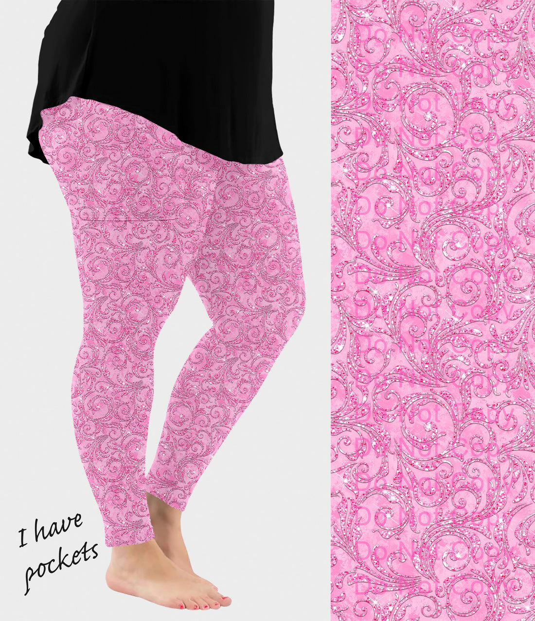 RTS - Pink Paisley Sparkle Leggings w/ Pockets