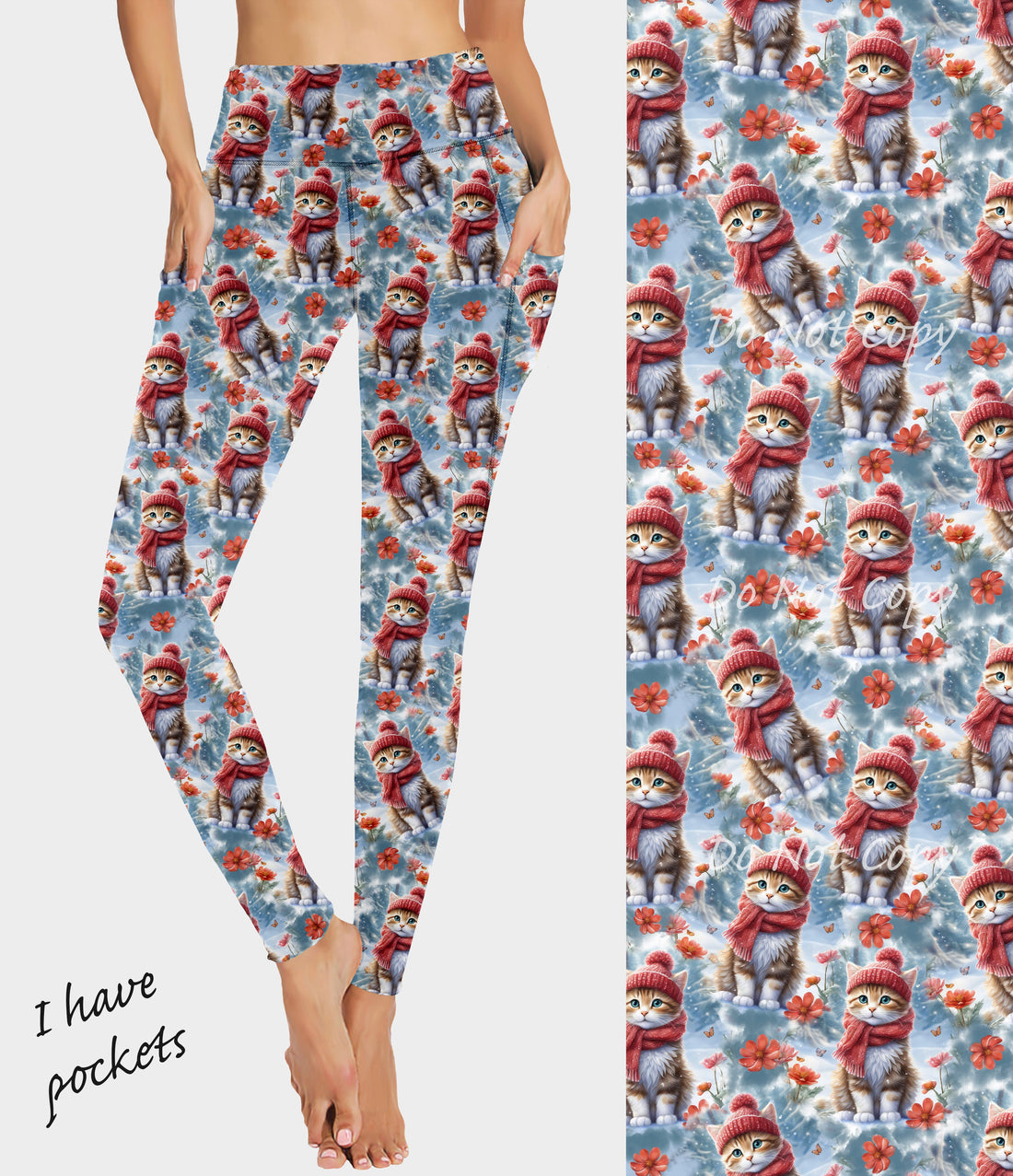 RTS - Snowy Kitten Leggings w/ Triangle Sport Pockets
