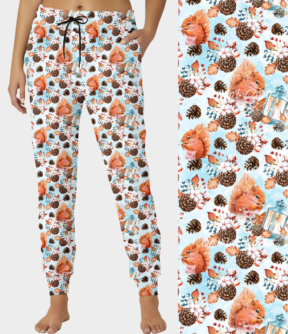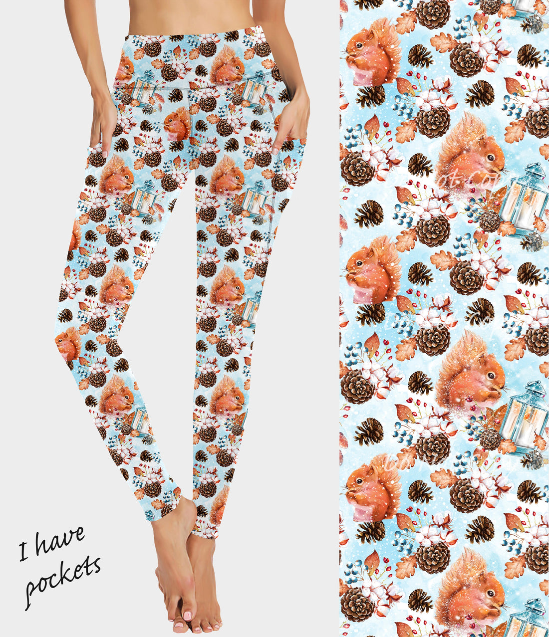 RTS - Snowy Squirrel Leggings w/ Pockets