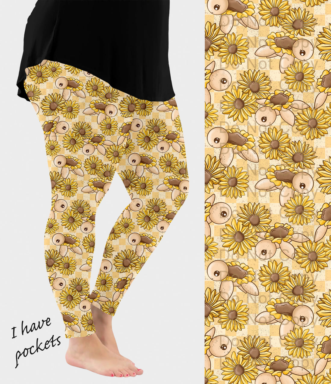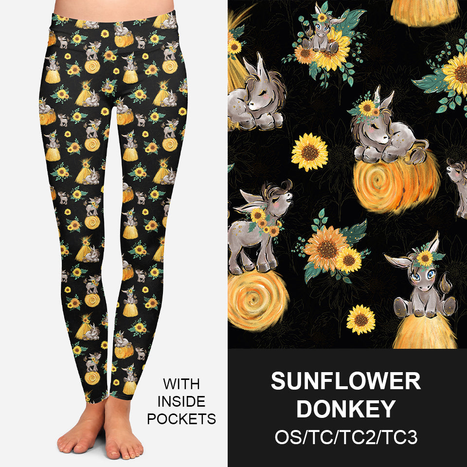RTS - Sunflower Donkey Leggings w/ Inside Pockets