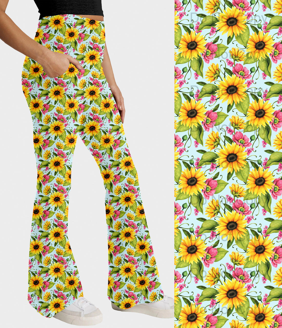 RTS - Summer Sunflower Flare Leggings w/ Pockets