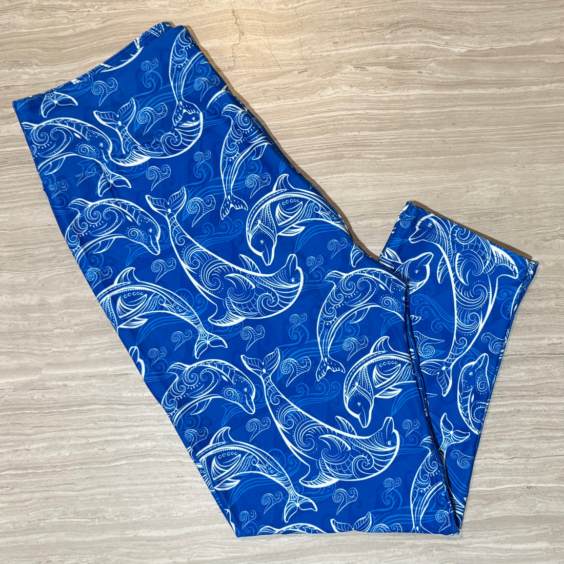 Swirl Dolphin Ocean Wave Print Blue Capri Soft Leggings