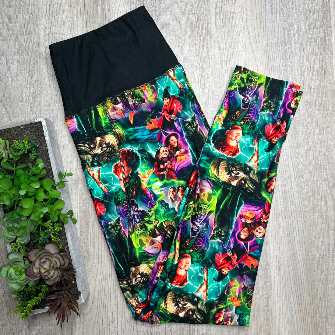 Vivid Hocus Pocus Themed Print Leggings w/ Pockets