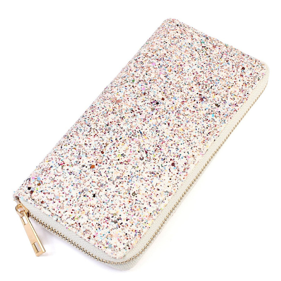 White Glitter Zipper Wallet