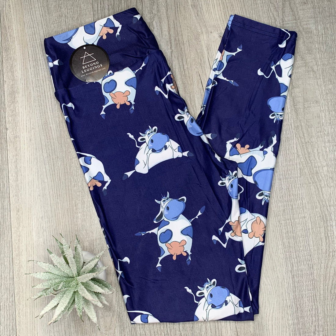 Whimsical Blue Cow Print Leggings