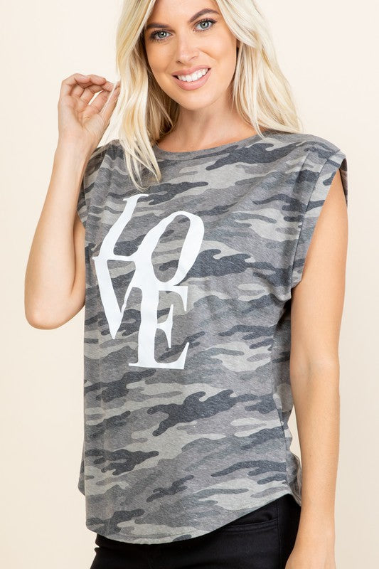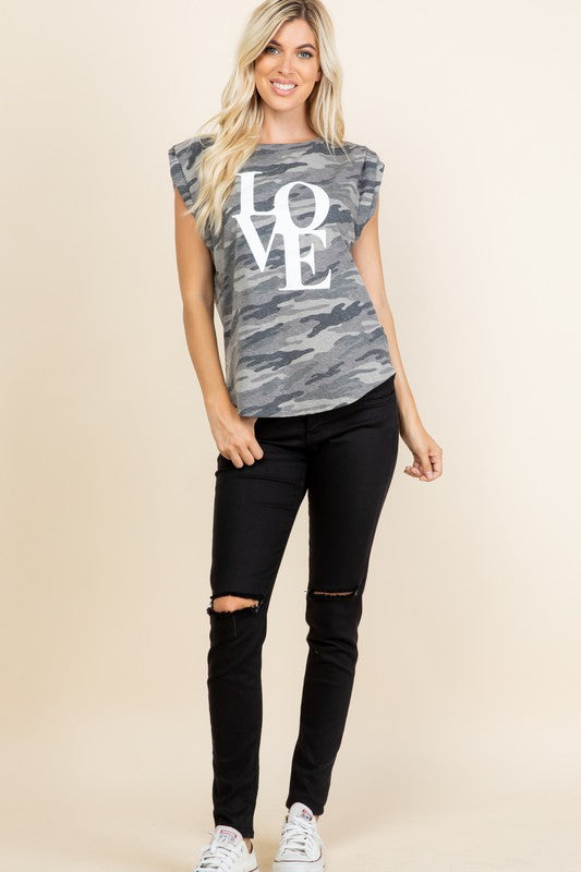 Gray Camo Cap Sleeve Love Top