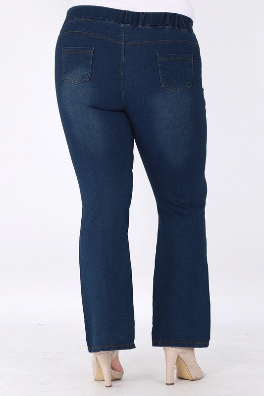 Comfy Dark Denim Jean Flare Pull On Jeggings