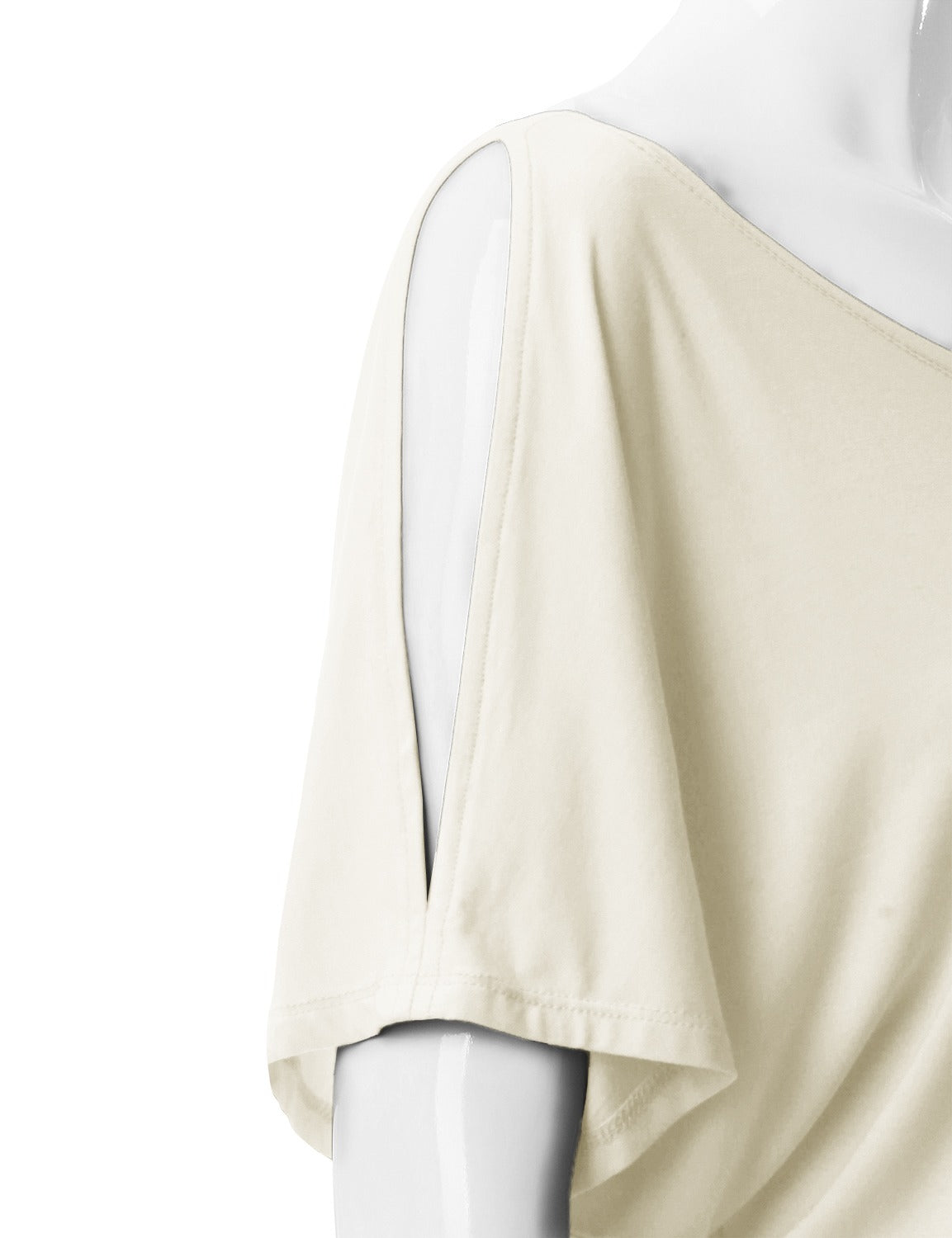 Modal Rayon Cold Shoulder Dolman Sleeve Tunic Top.