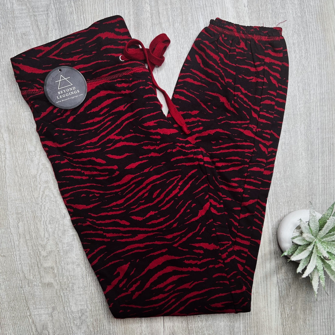 Zenana Woman’s Zebra Printed Red Fleece Pants. WAIST(RELAXED): 29 1/2", INSEAM: 33" - MEASURED FROM...