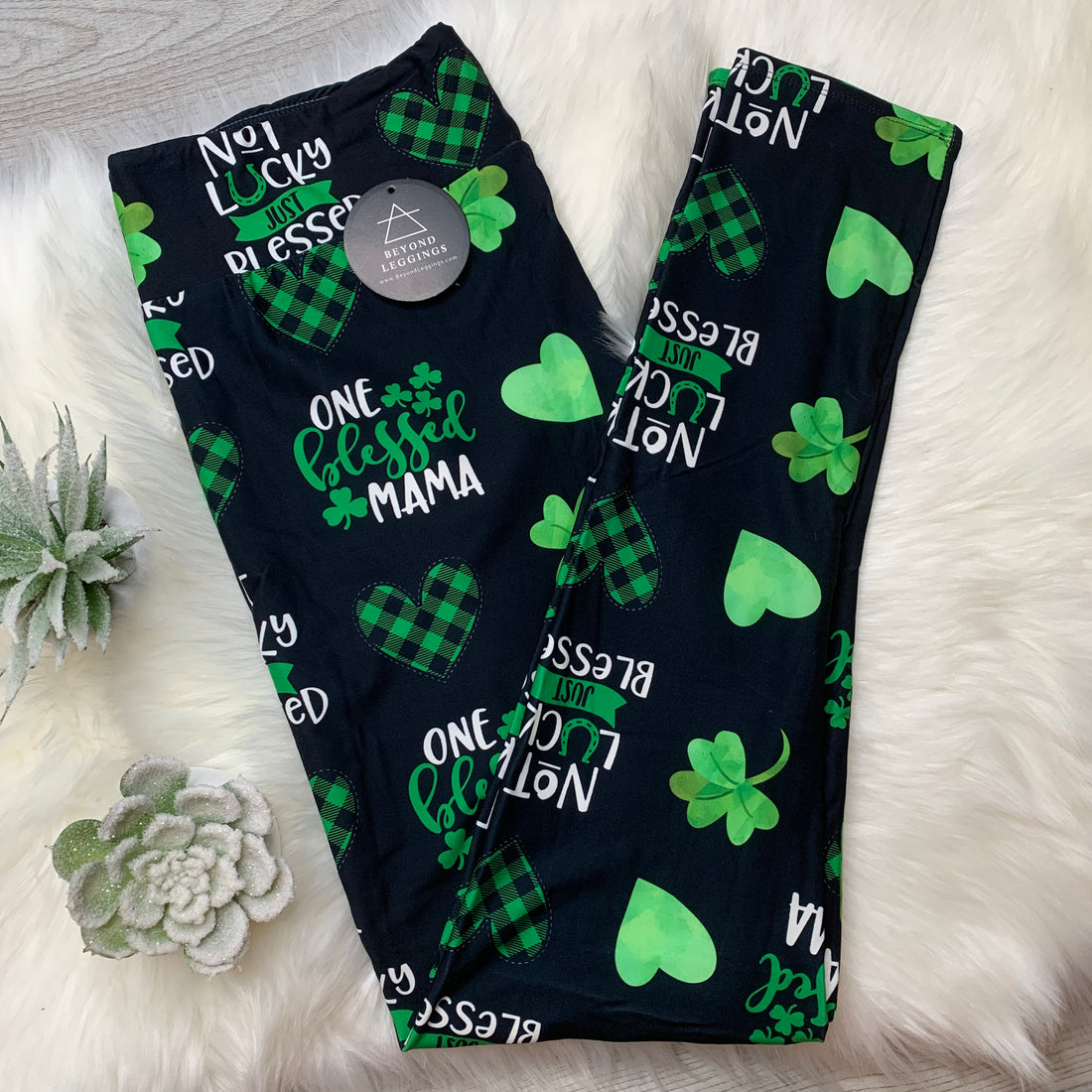 Blessed Mama Green Plaid Black Leggings: Not Lucky, Just Blessed