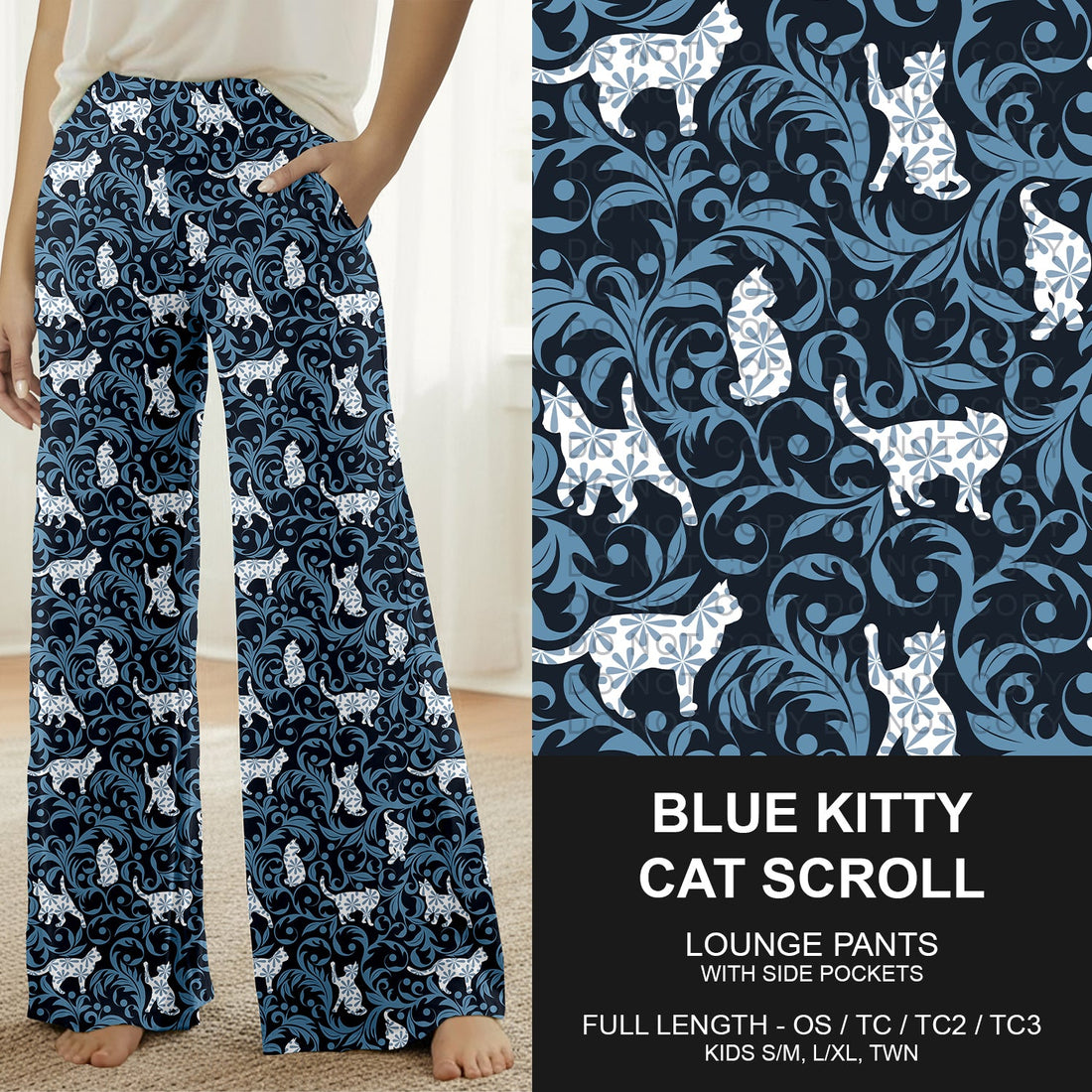 B265 - Preorder Blue Kitty Cat Scroll Lounge Pants (Closes 12/14. ETA mid Feb.)