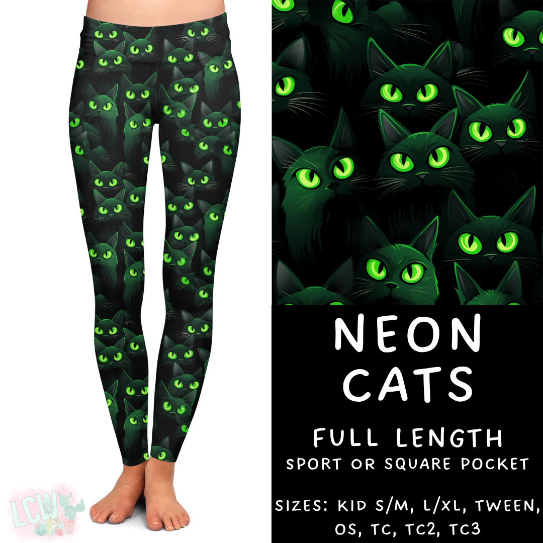 Ready To Ship - Neon Cats Full Length Leggings - Sport Pocket OS