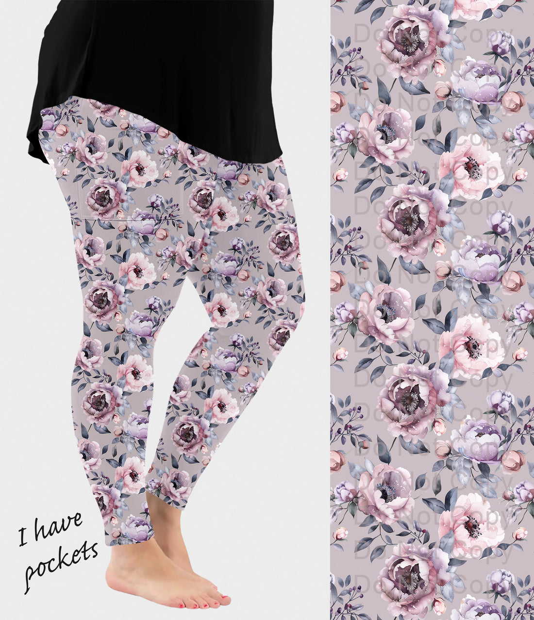 RTS - Mauve Peony Blooms Leggings w/ Pockets