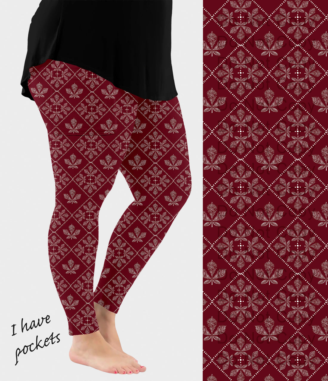 RTS - Red Autumn Leaves Leggings w/ Pockets