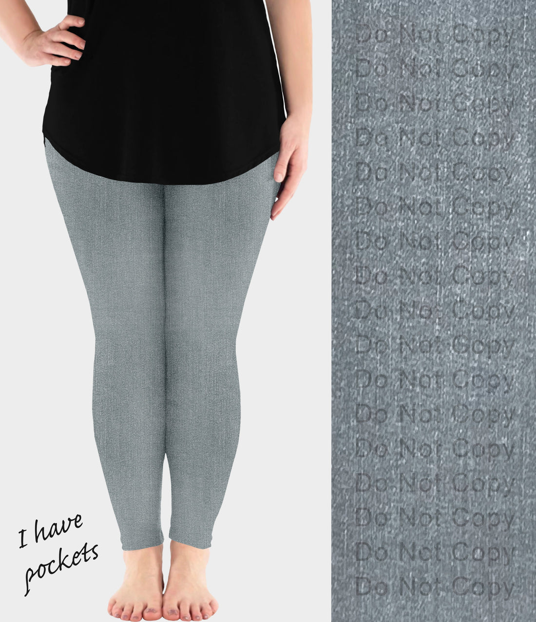 RTS - Gray Faux Denim Leggings w/ Pockets