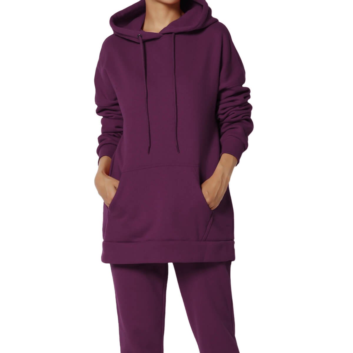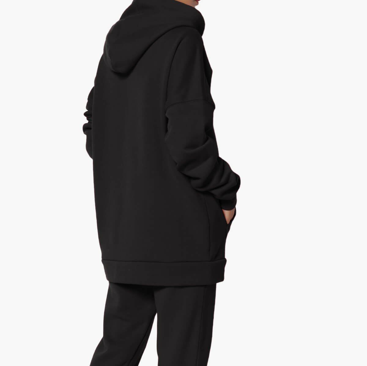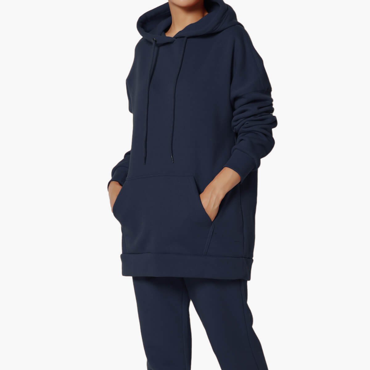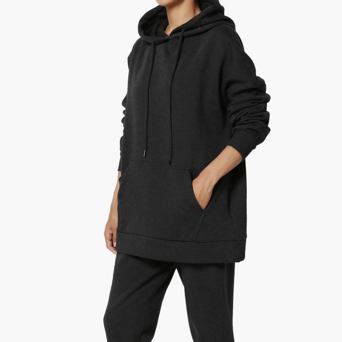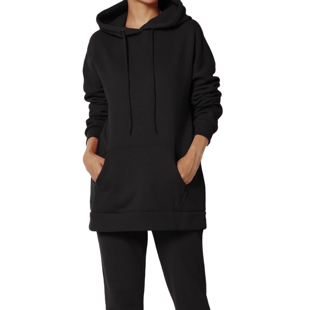 - Pullover, pockets, drop shoulders, Extended length, Mid-Weight
