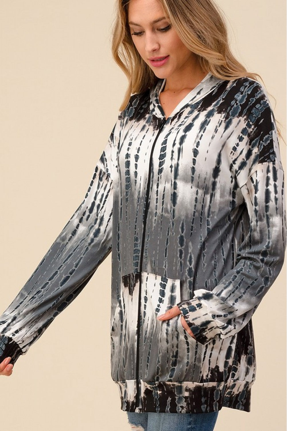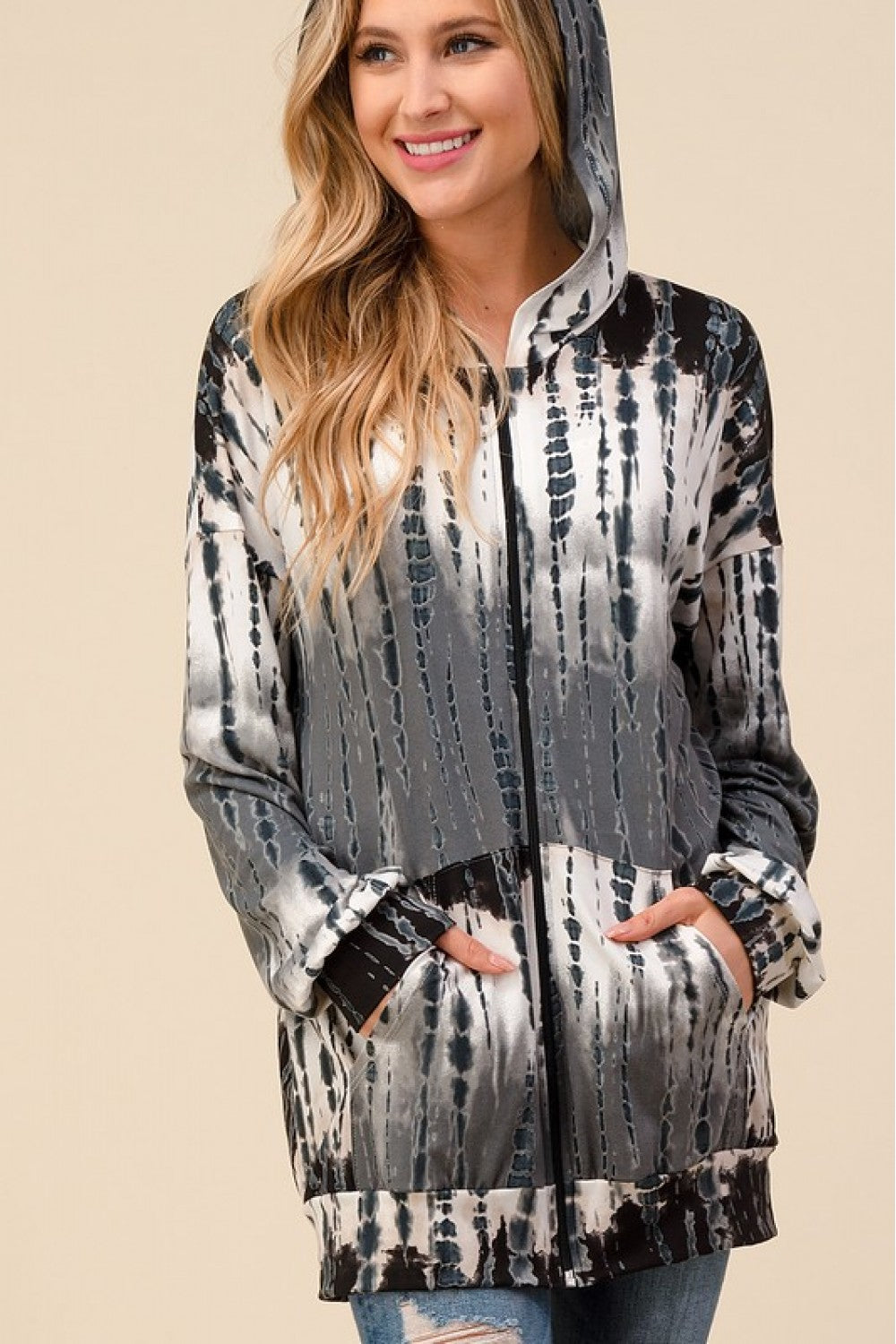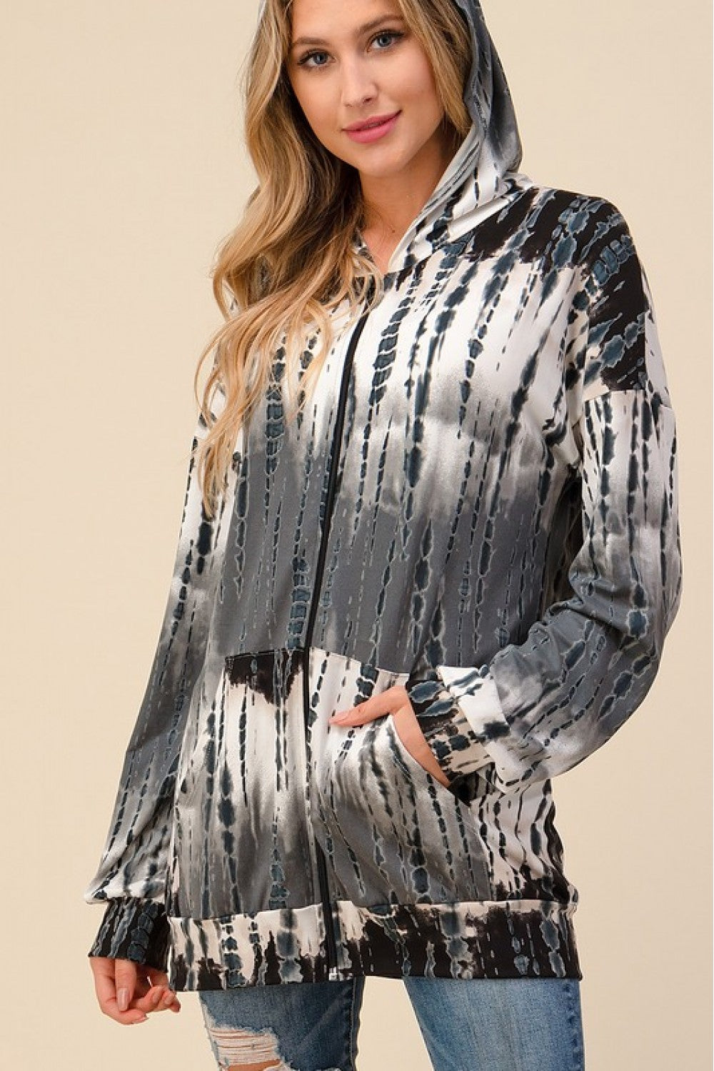 Butter soft stretchy material shibori tie dye printed hoodie with zipper