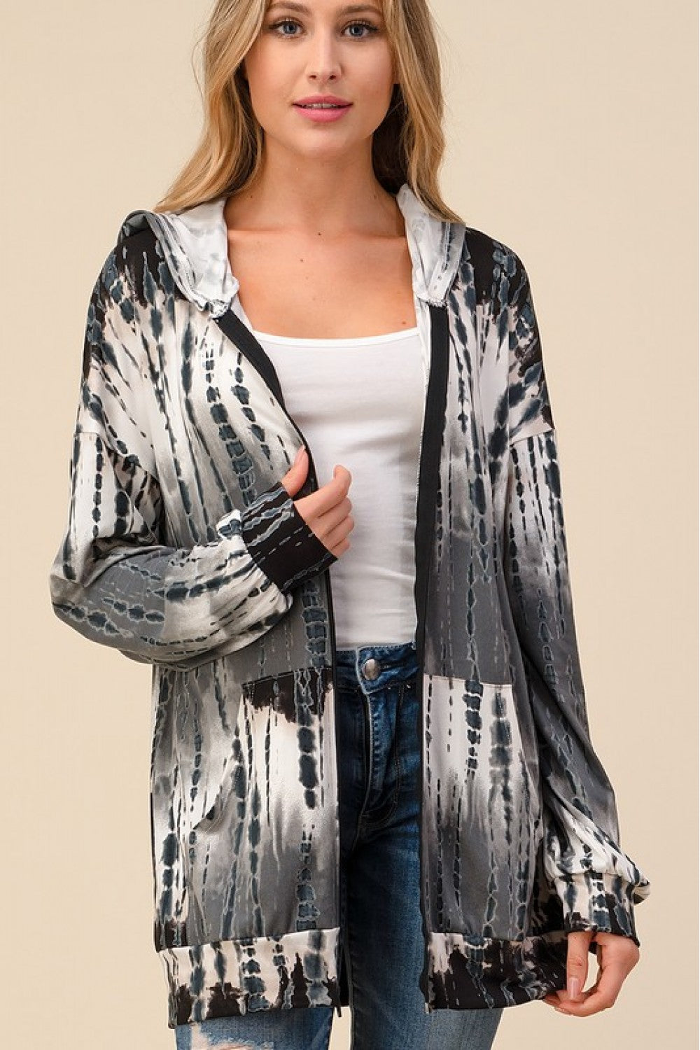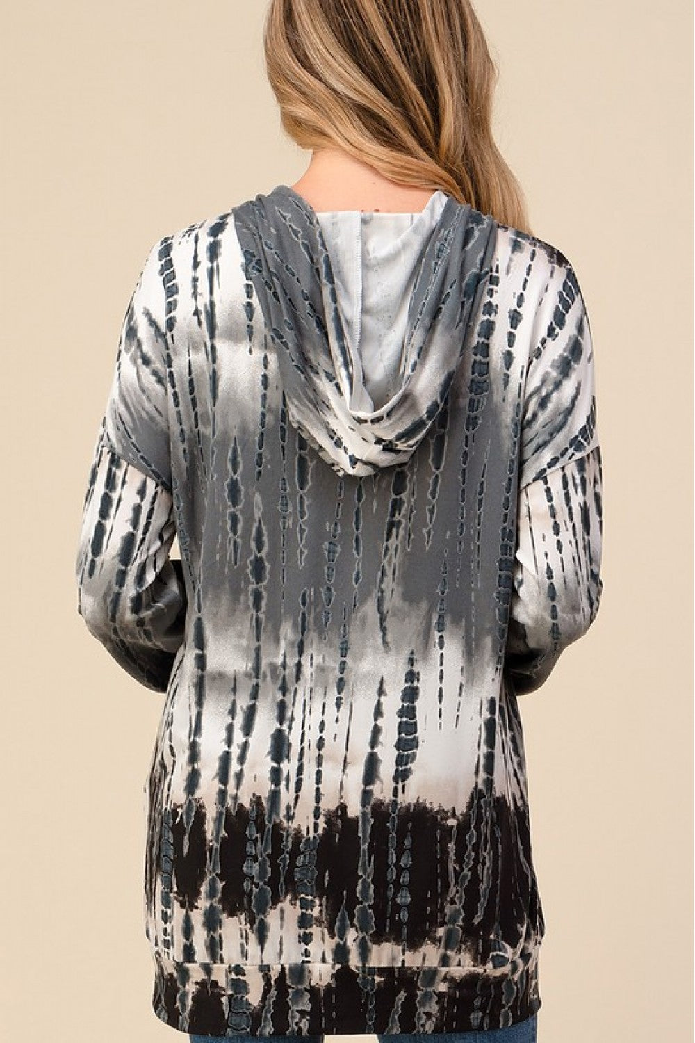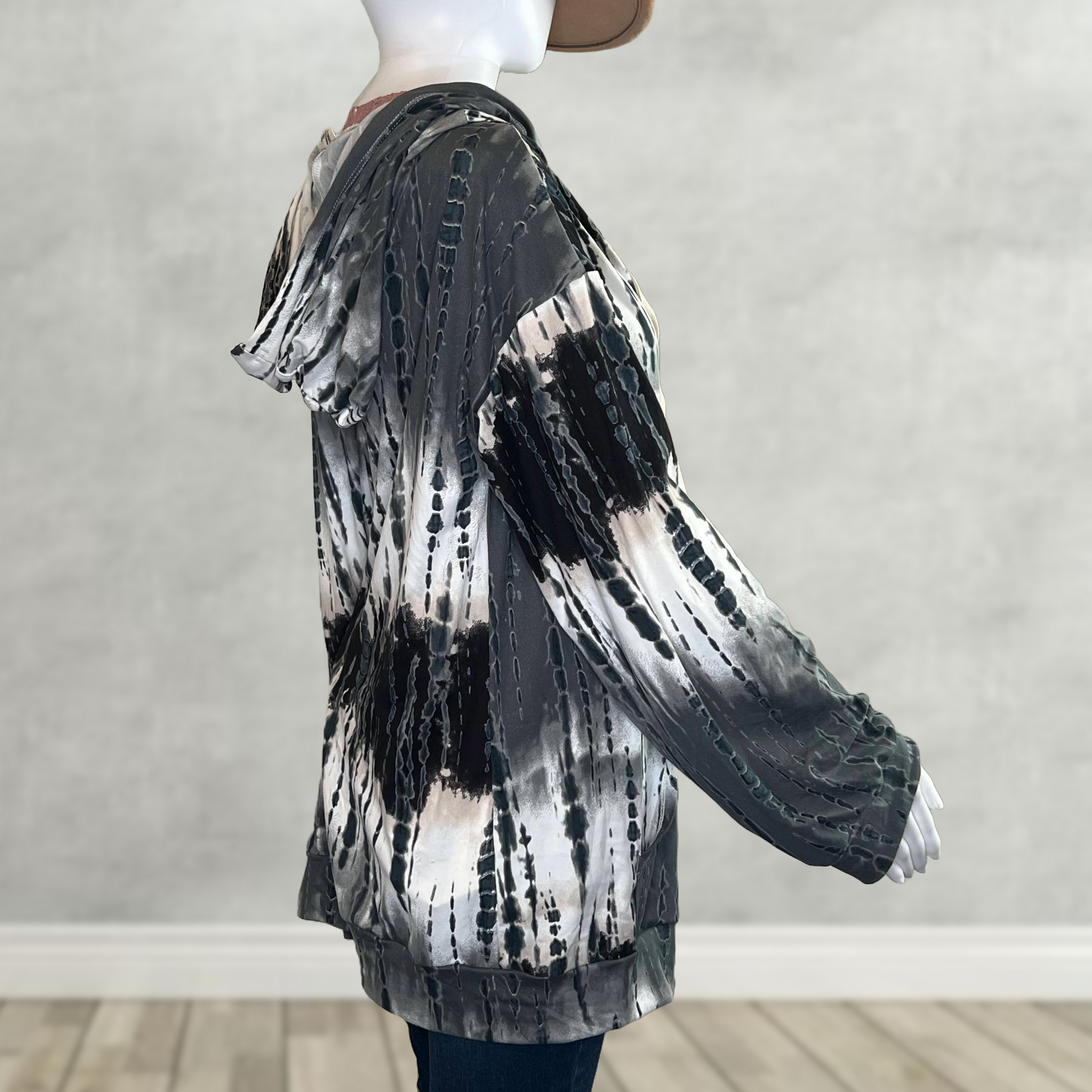 Butter soft stretchy material shibori tie dye printed hoodie with zipper