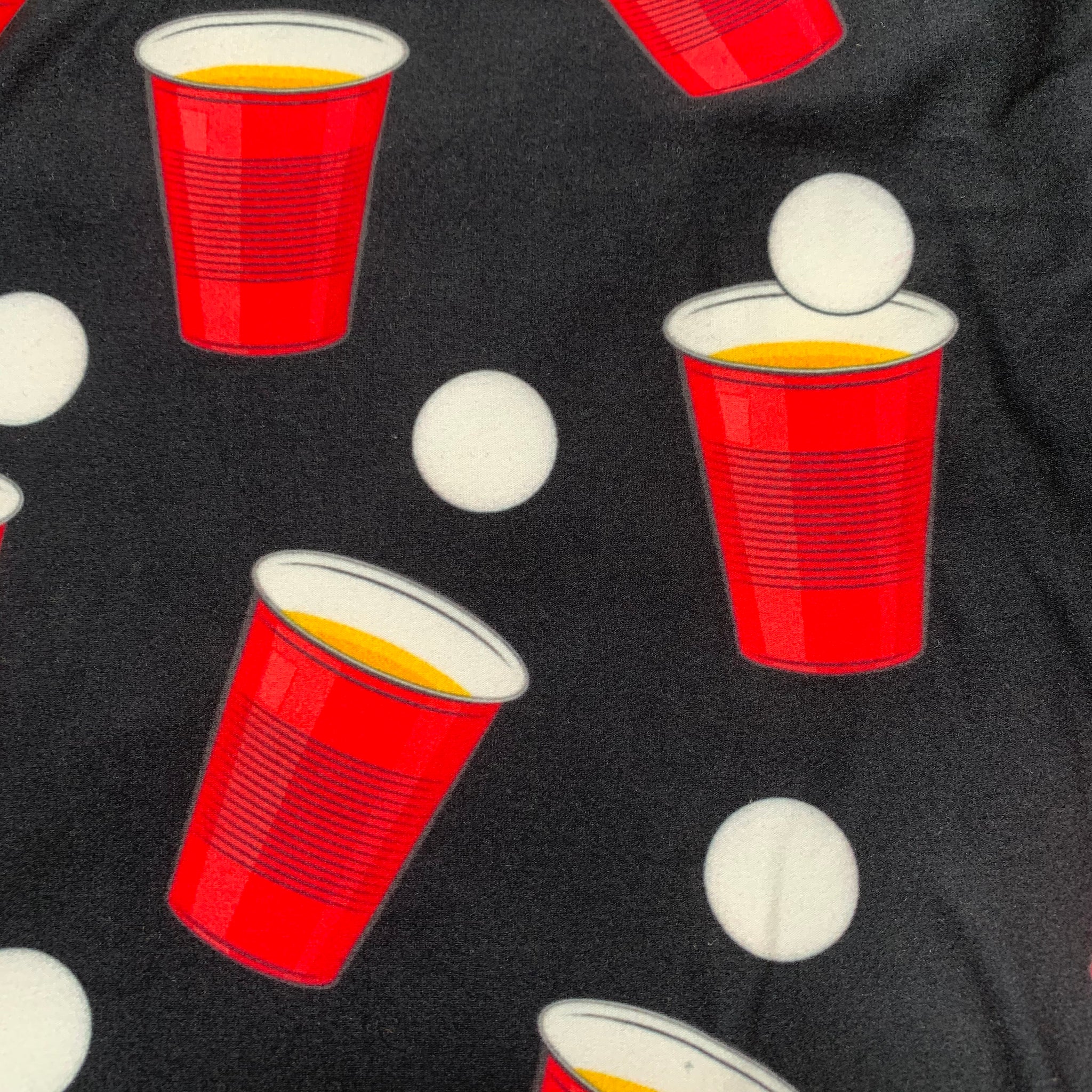 - Unique Design: Eye-catching red cup and ping pong ball print for party enthusiasts.