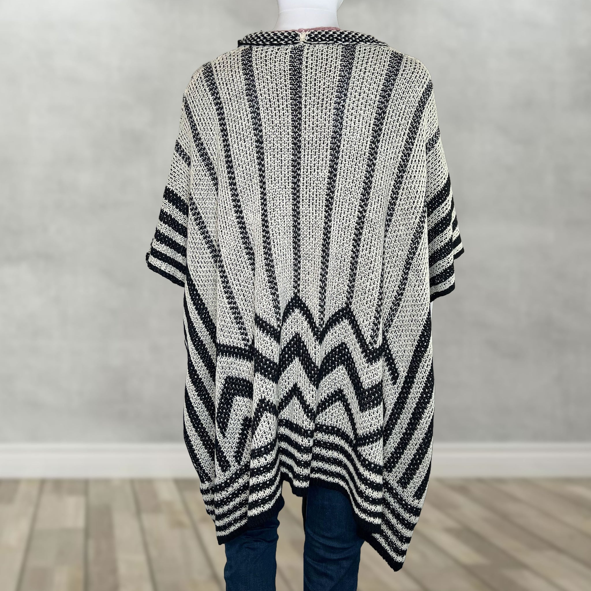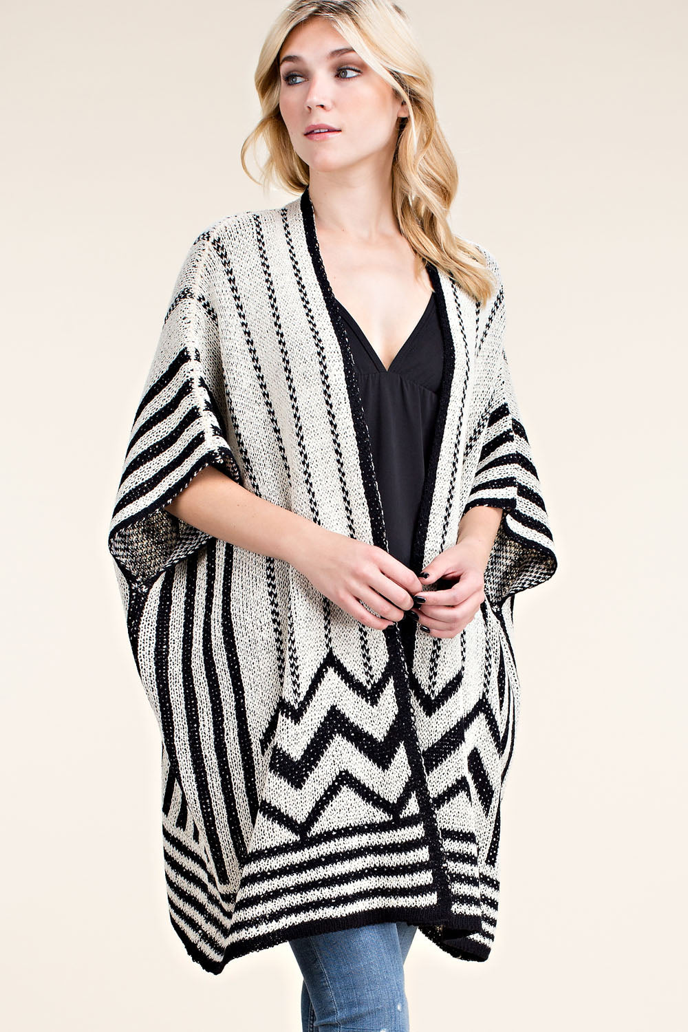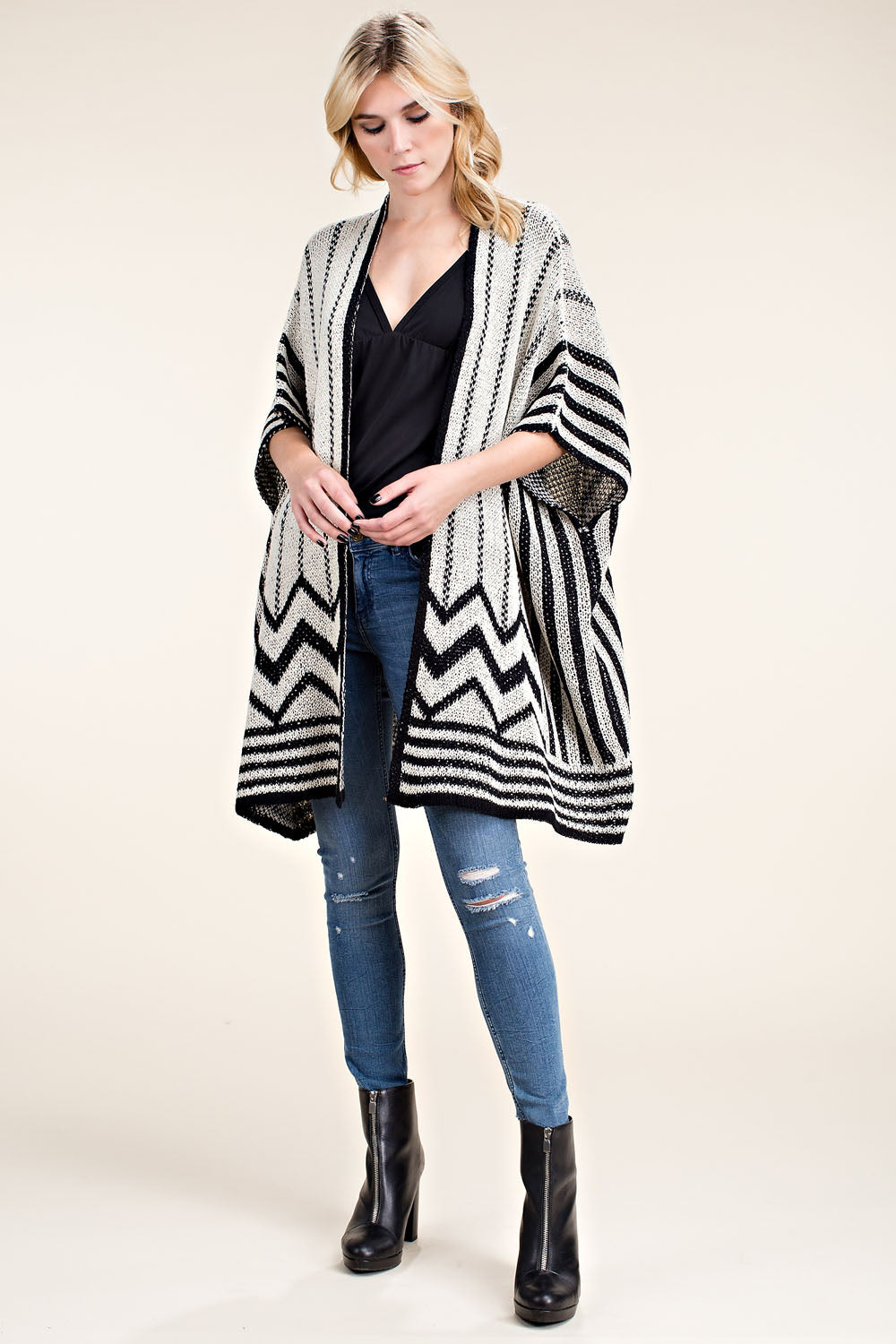 Black & White Knitted Zig-Zag Blanket Cardigan