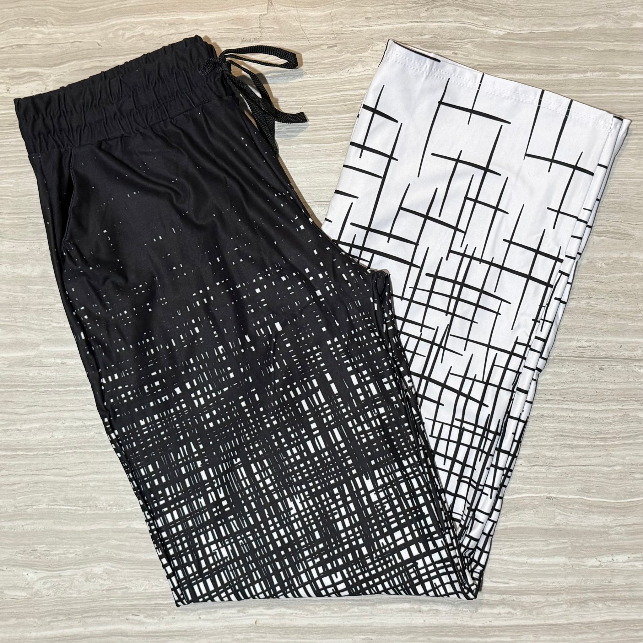 Black & White Crosshatch Print Lounge Pants w/ Pockets