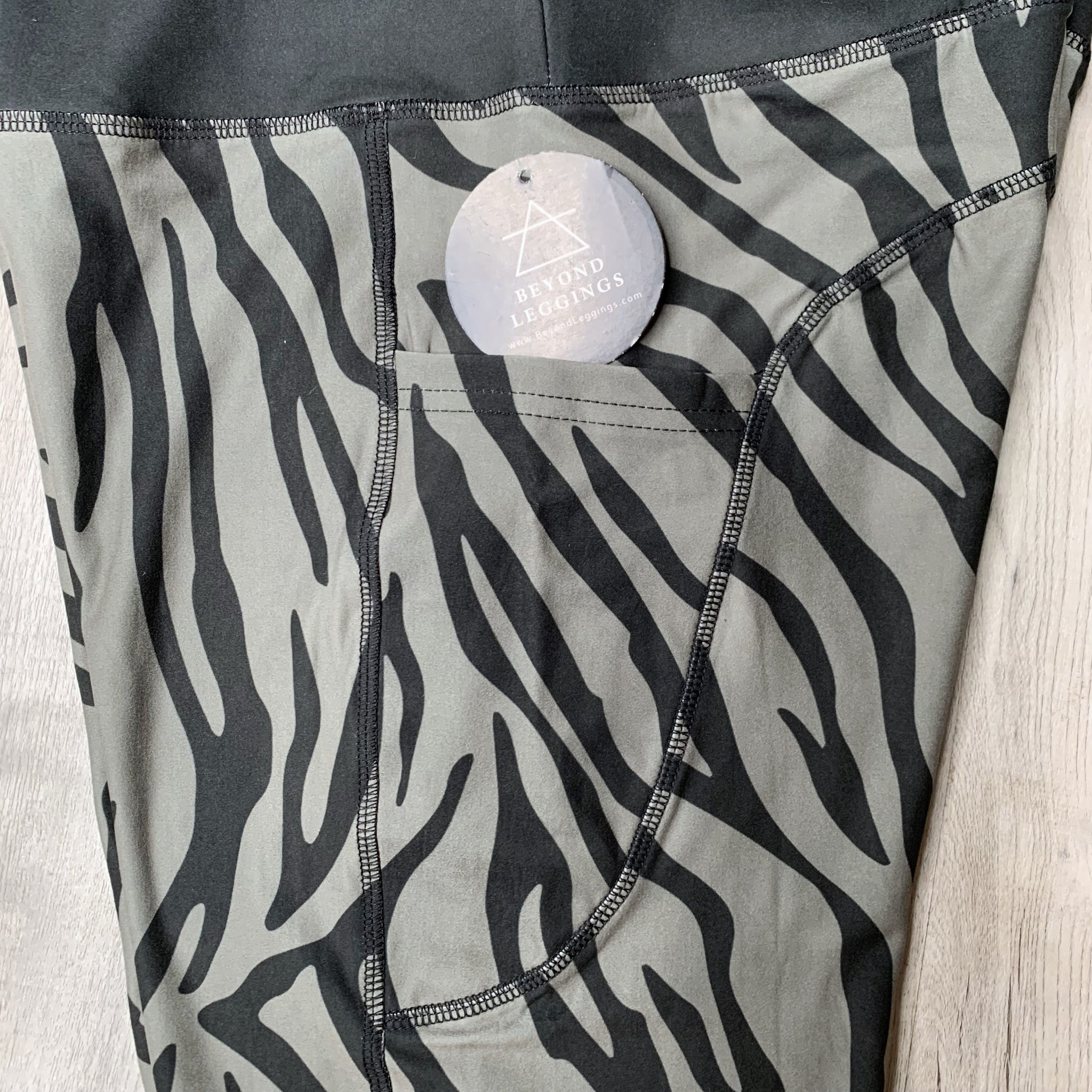 Black & Gray Zebra Print Soft Leggings w/ Double Pockets