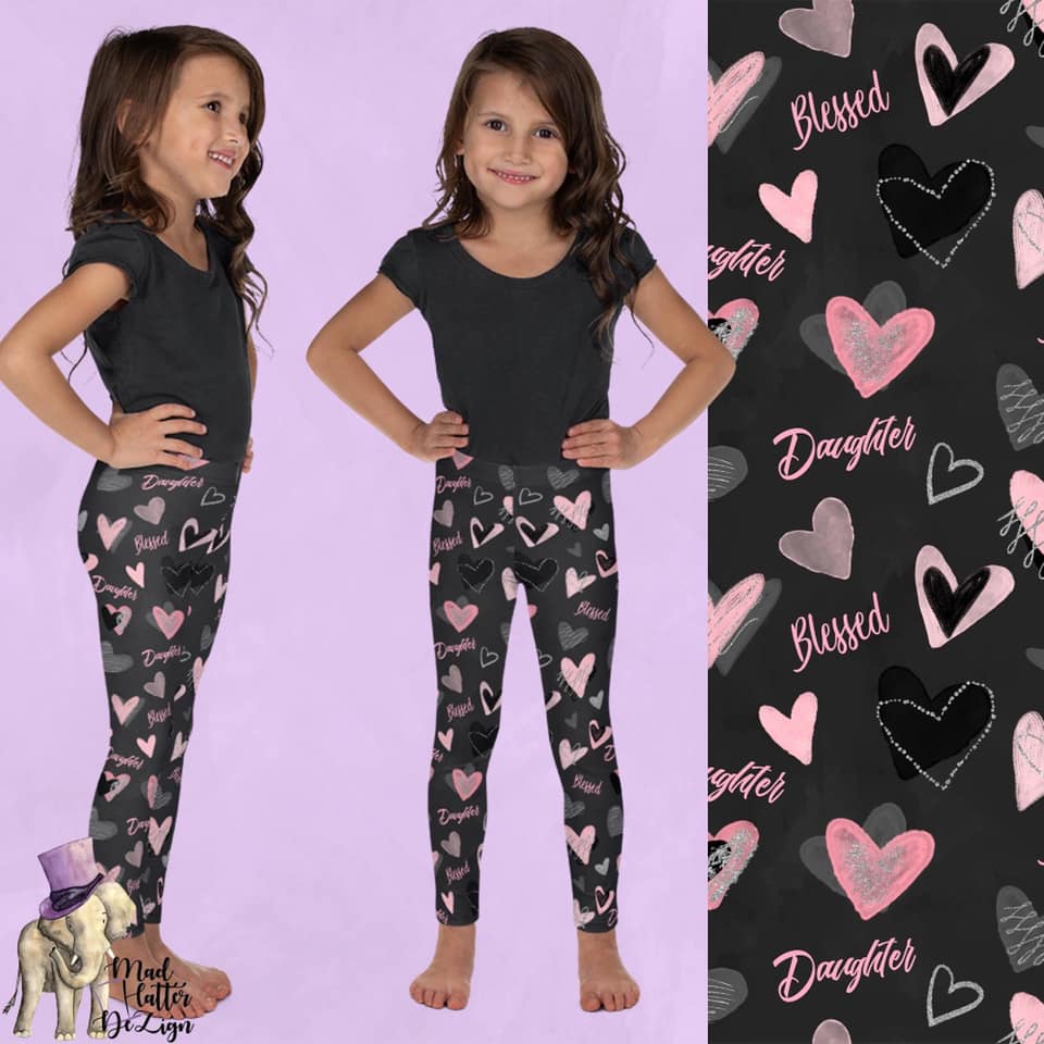 Blessed Daughter Heart-Themed Leggings – Soft High-Waisted Leggings - Adult & Kids Sizes
