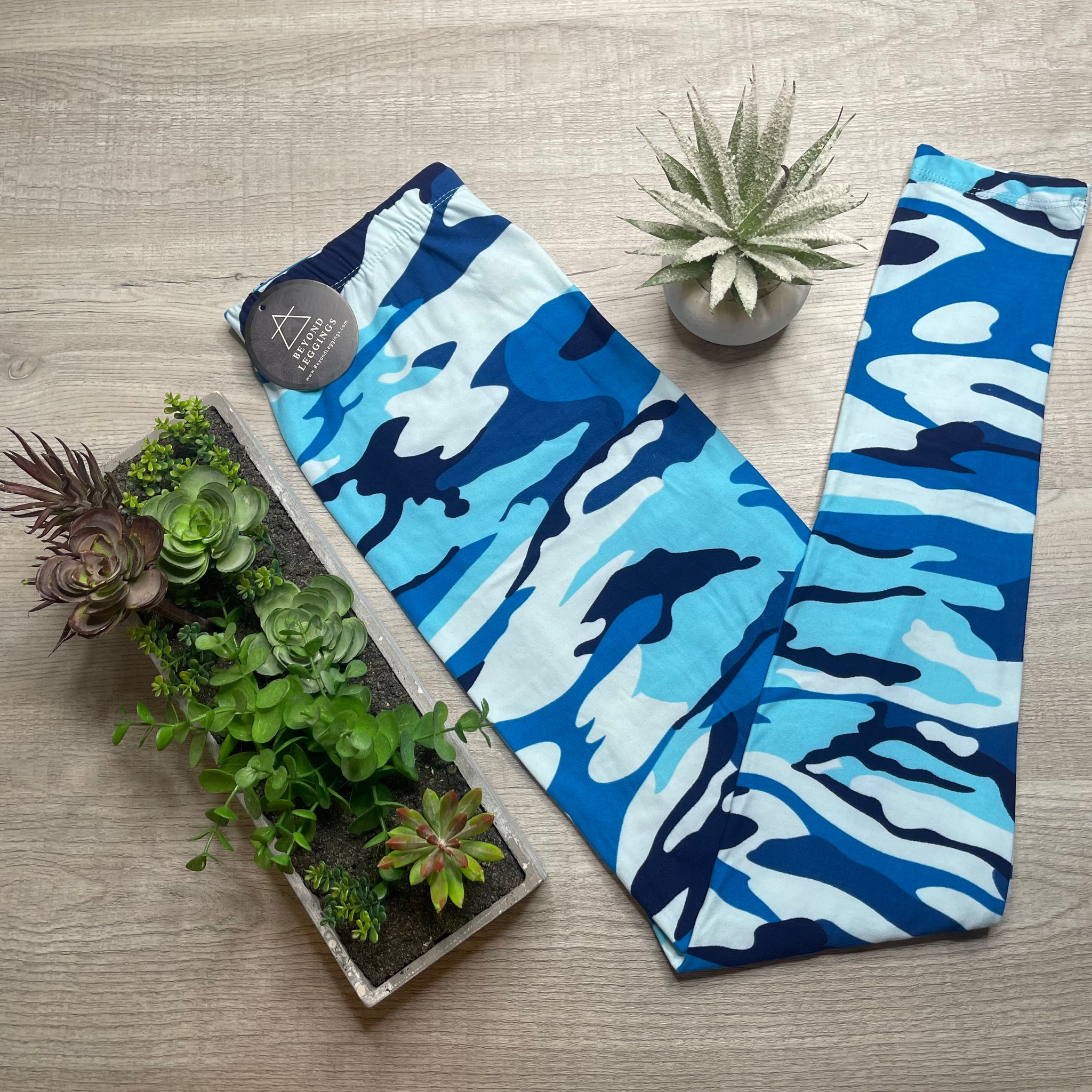 Blue Camo Print Soft Leggings - Adult & Kid Sizes