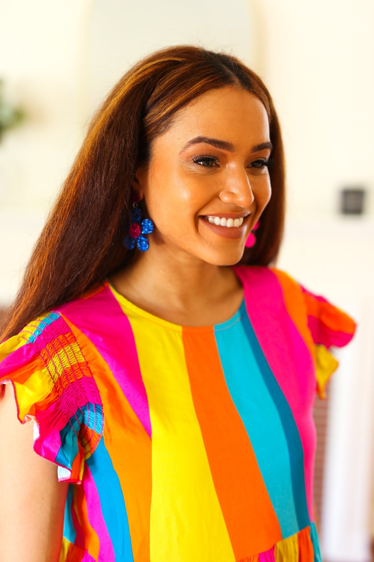 Look more than adorable in these blue and magenta glitter mod daisy acrylic earrings. A must-have trendy design for summer 2024!