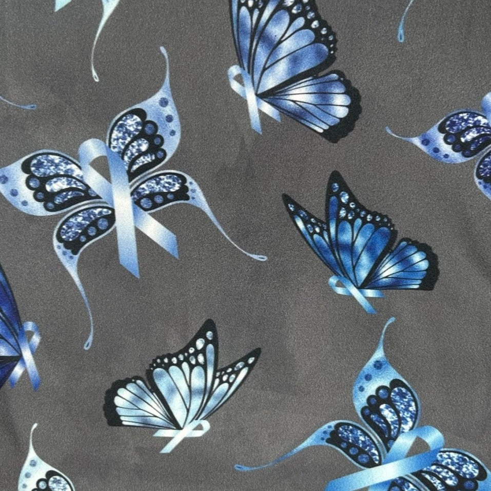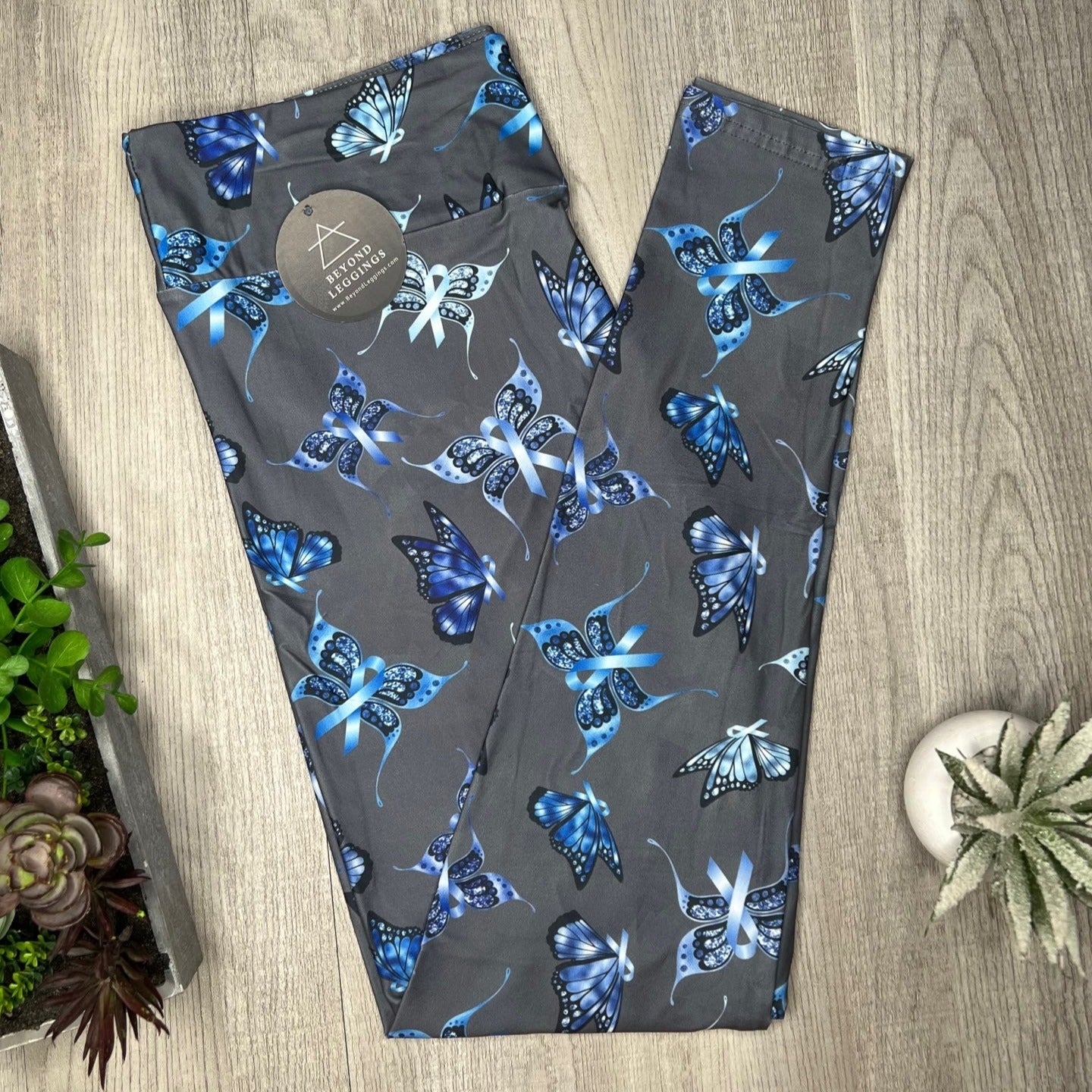 Blue Awareness Ribbon Butterfly Print Gray Leggings