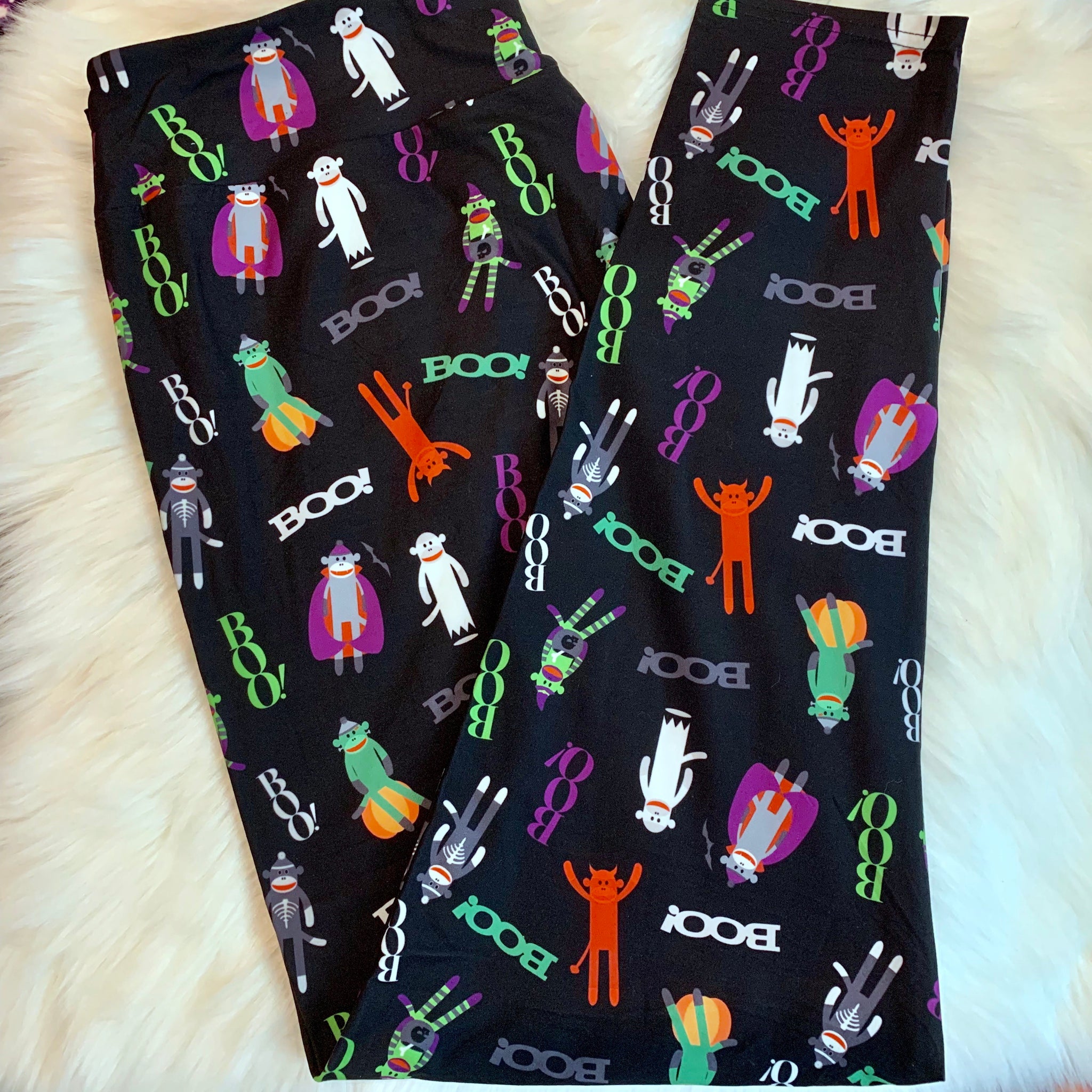 Boo Sock Monkey in Costumes Halloween Print Soft Leggings