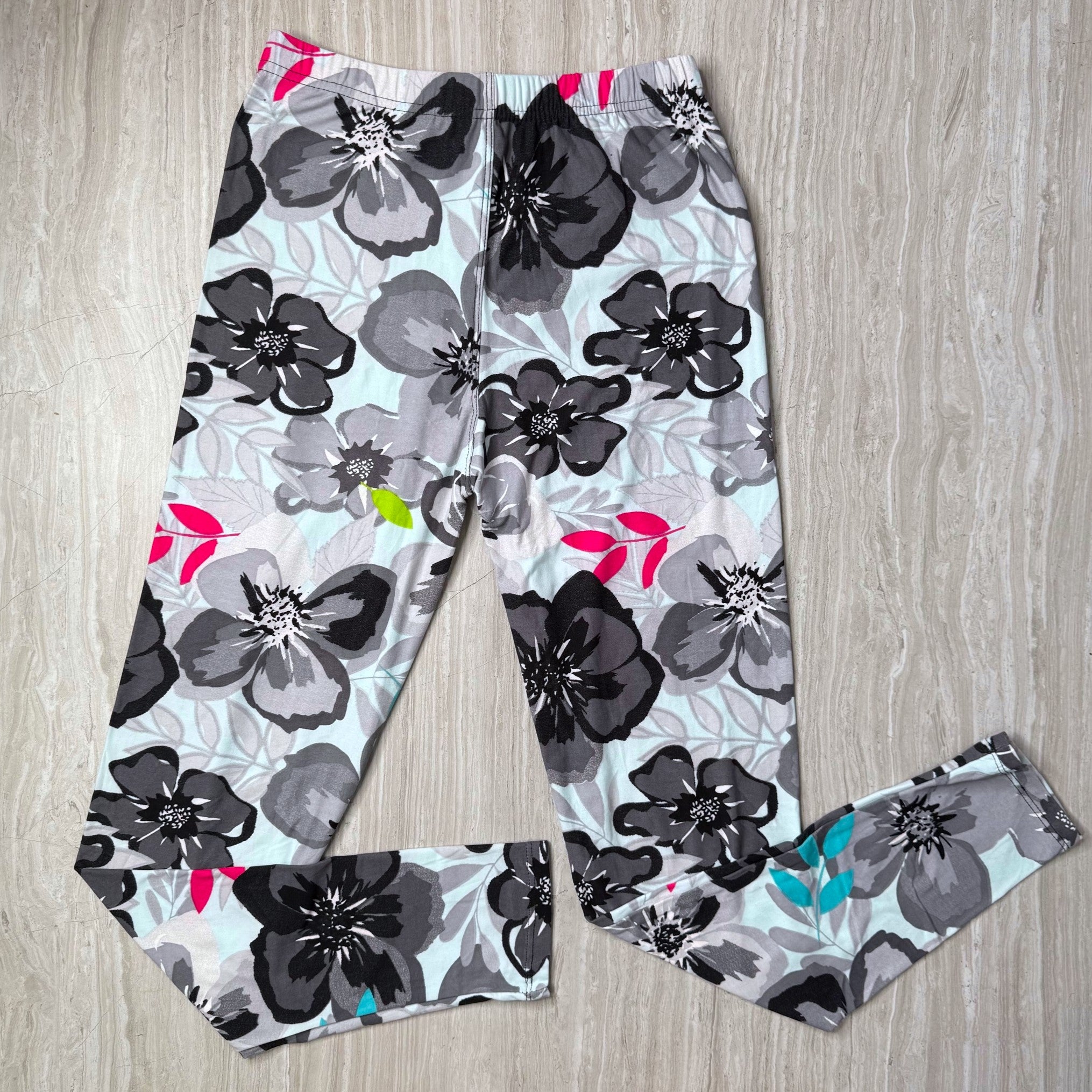 Bright Contrast Floral Hibiscus Blossom Print Soft Leggings
