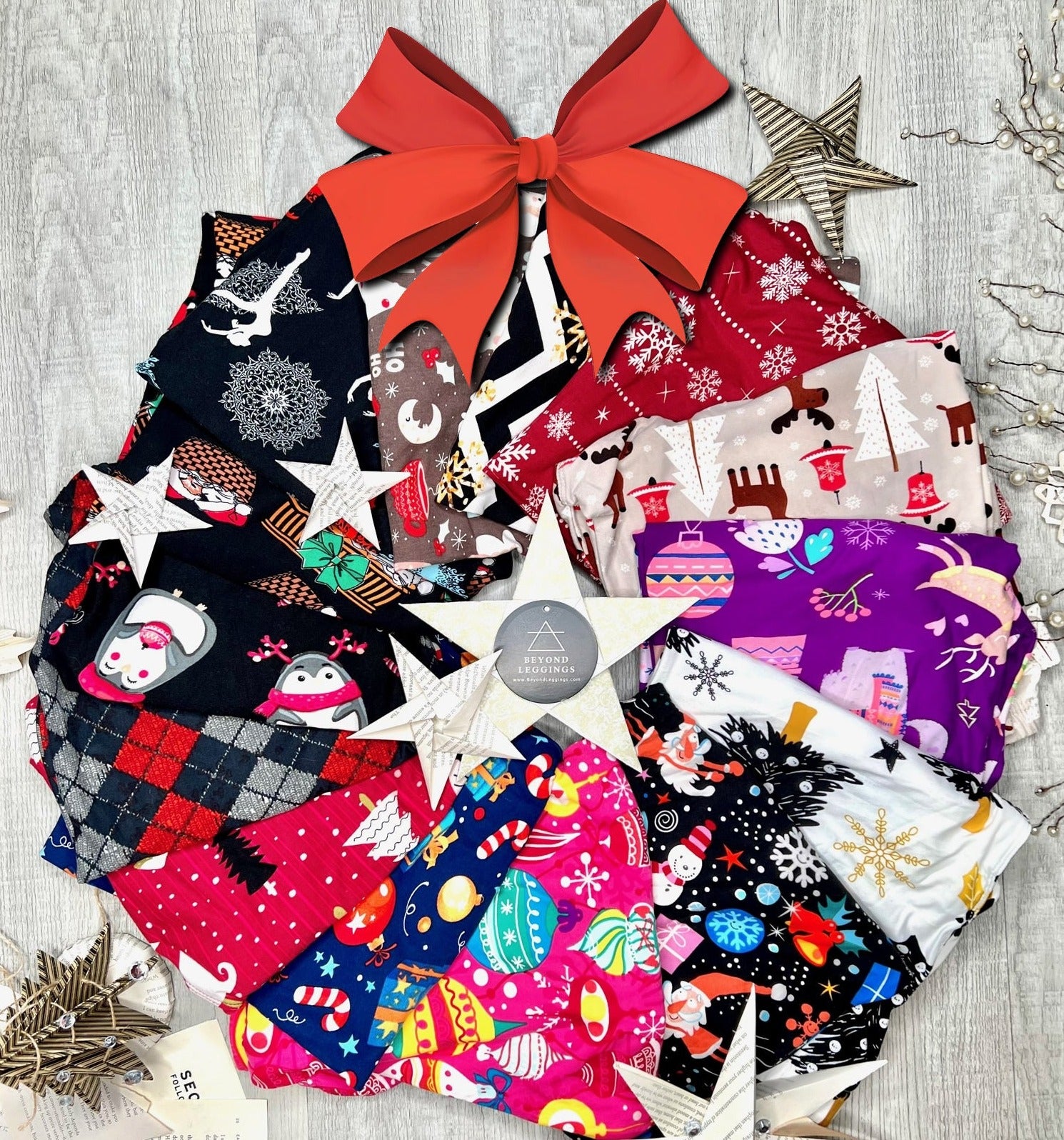 Give yourself a surprise gift! You will never want to take off these amazingly soft leggings. They are perfect for dressing up for a holiday party or lounging around. You pick your size and the elves will pick the print from 25 cheerful designs!