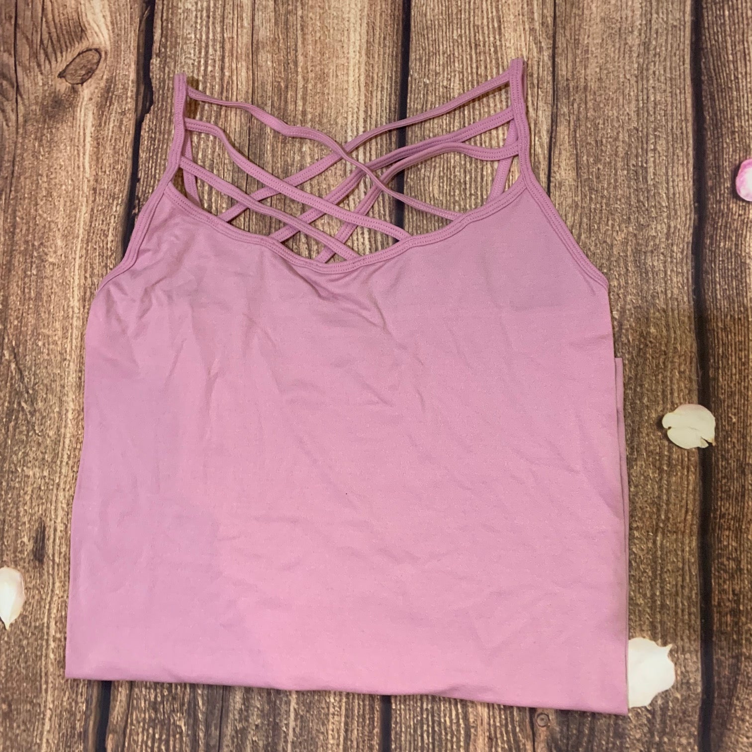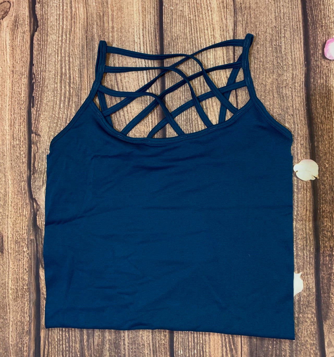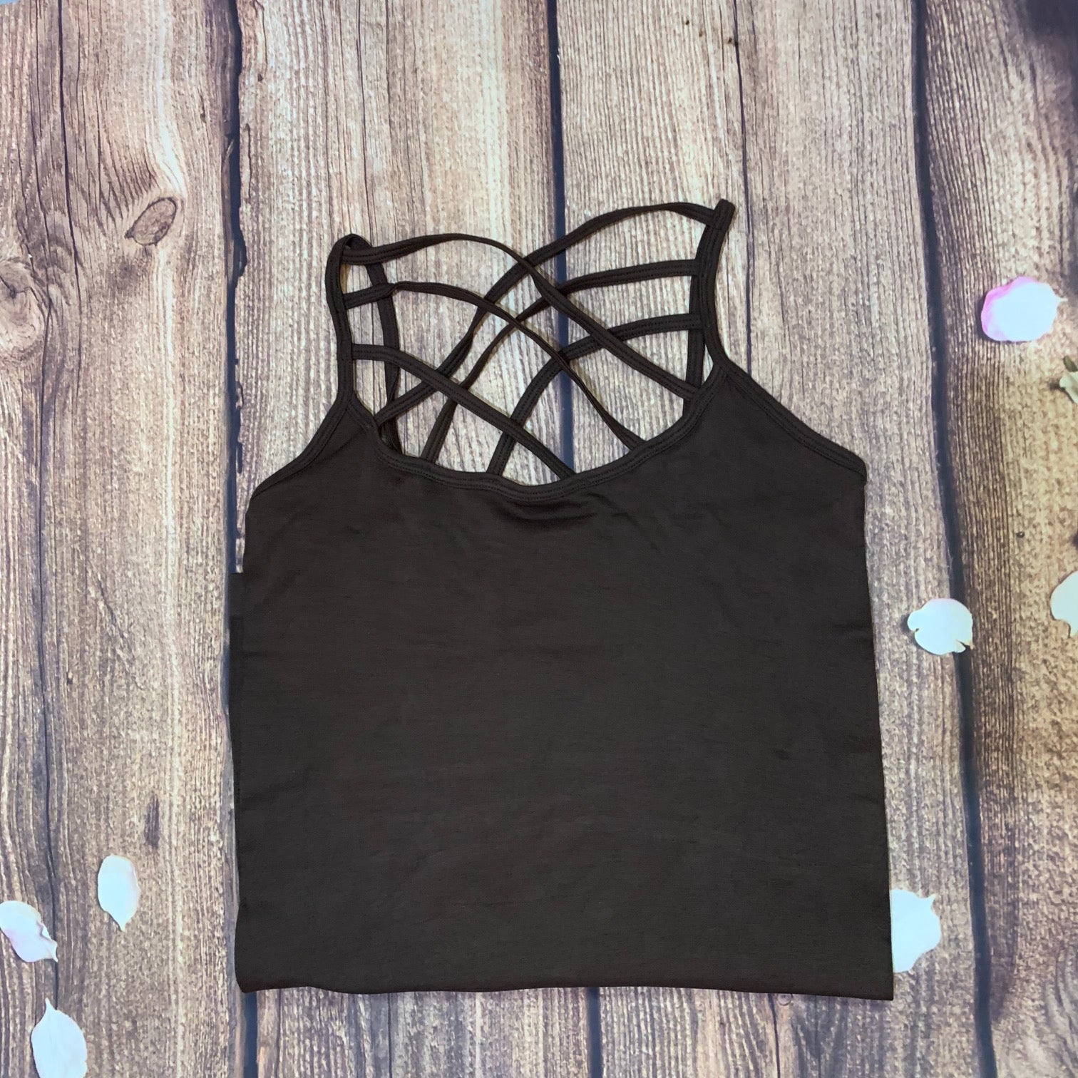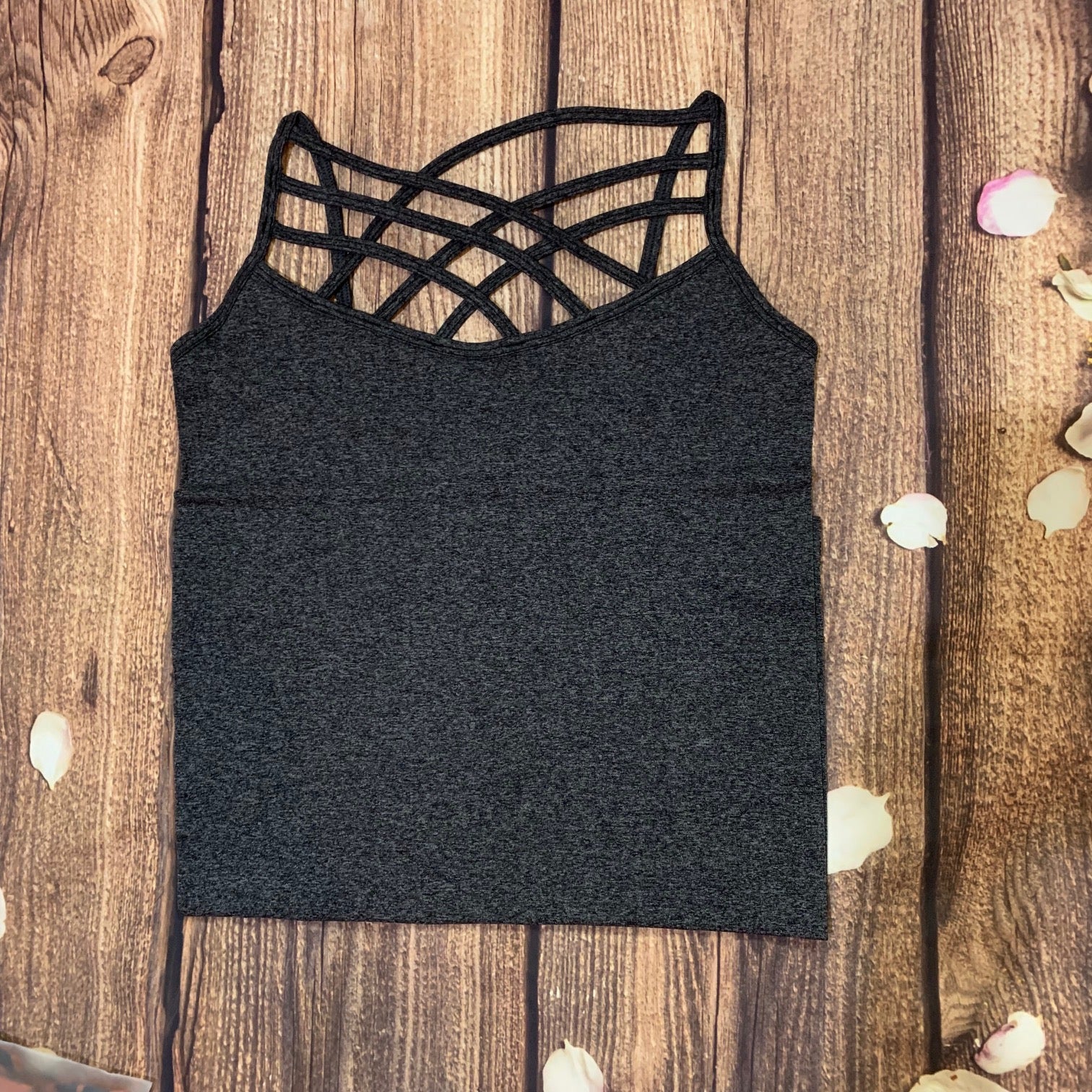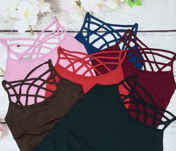 Our Criss Cross Cage Cami is the perfect piece that is sure to add tons of versatility to your collection! Wear this tank with your favorite jeans and baseball cap for a casual look! Also, try layering this tank with cardigans and jackets for the perfect spring look! Also try stack layering the camis for a unique look.