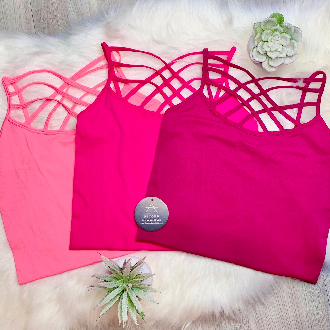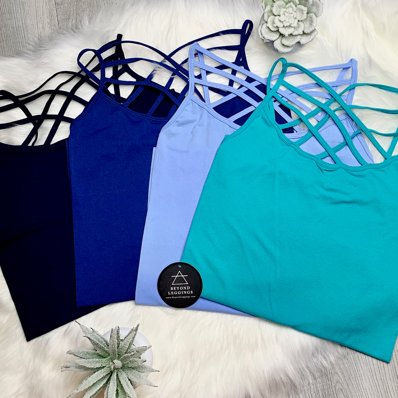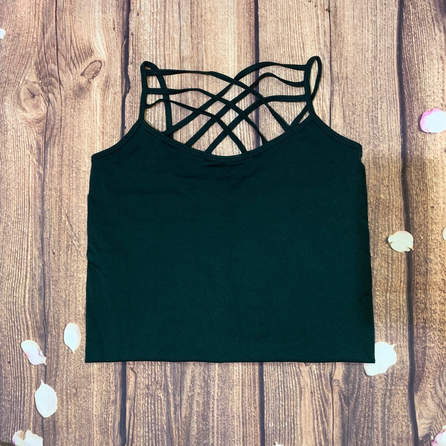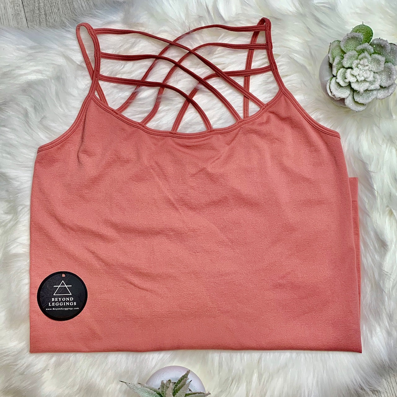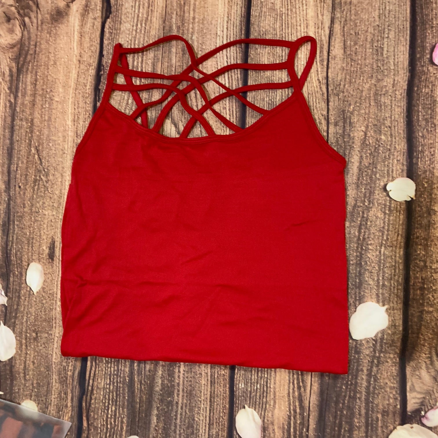 Our Criss Cross Cage Cami is the perfect piece that is sure to add tons of versatility to your collection! Wear this tank with your favorite jeans and baseball cap for a casual look! Also, try layering this tank with cardigans and jackets for the perfect spring look! Also try stack layering the camis for a unique look.