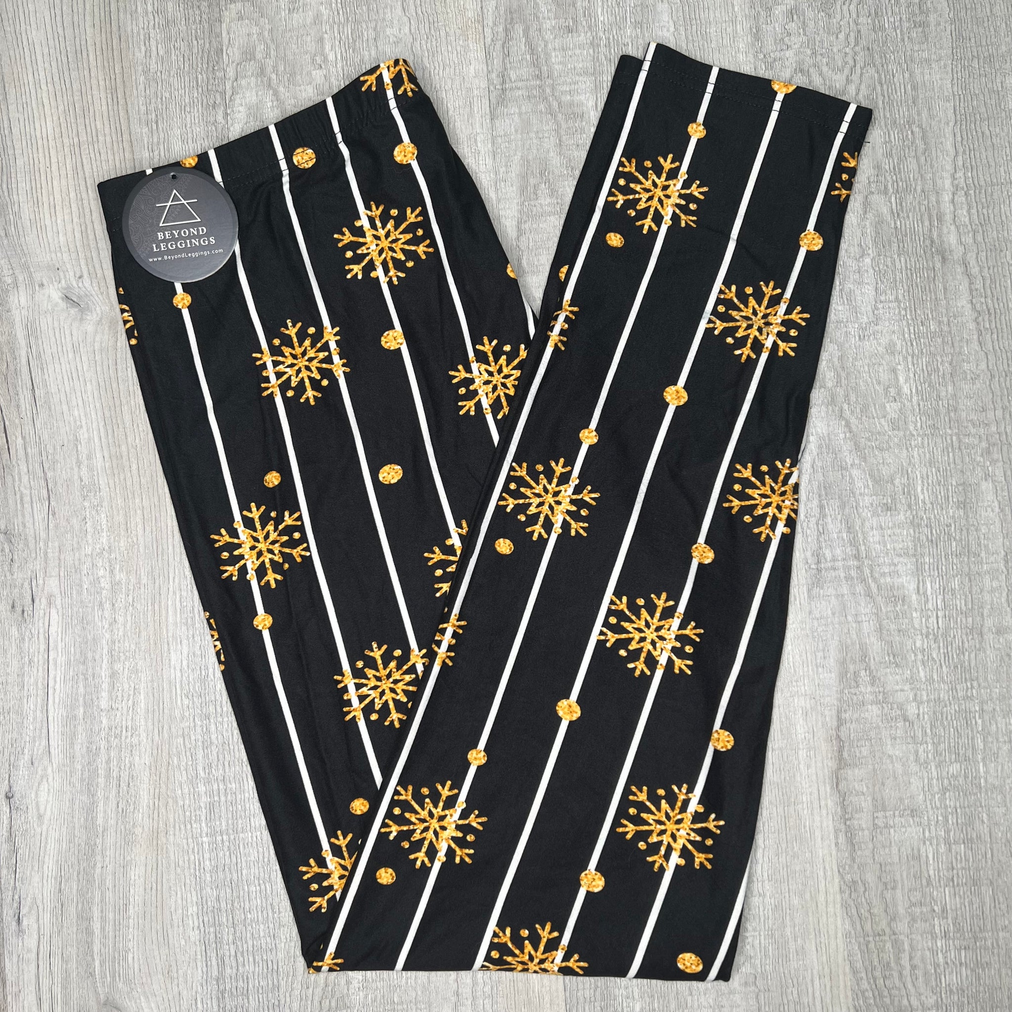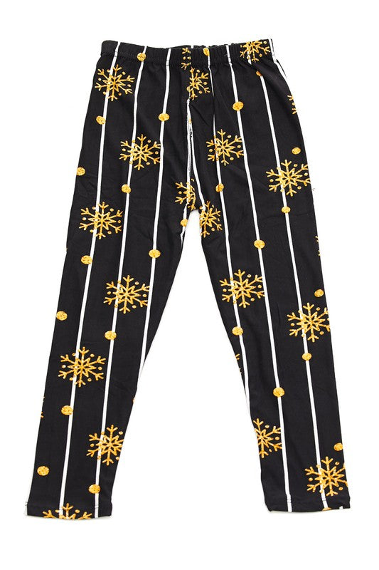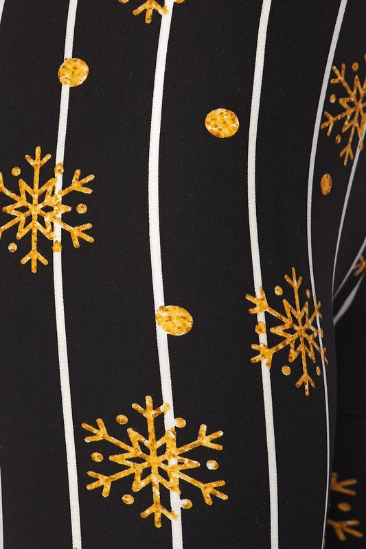 Gold Snowflake Pinstripe Print Holiday Soft Leggings - Adult & Kid Sizes
