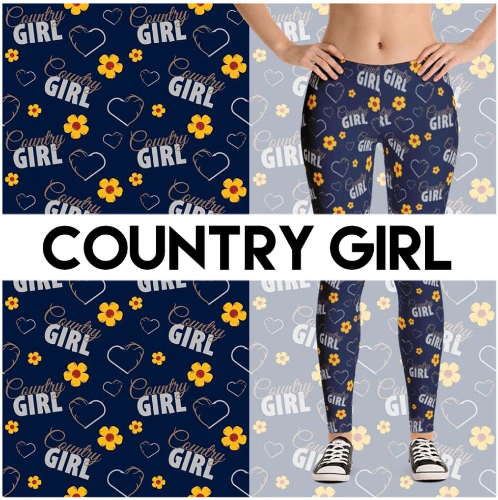 Country Girl Buttercup Hunting Fishing Blue Soft Leggings