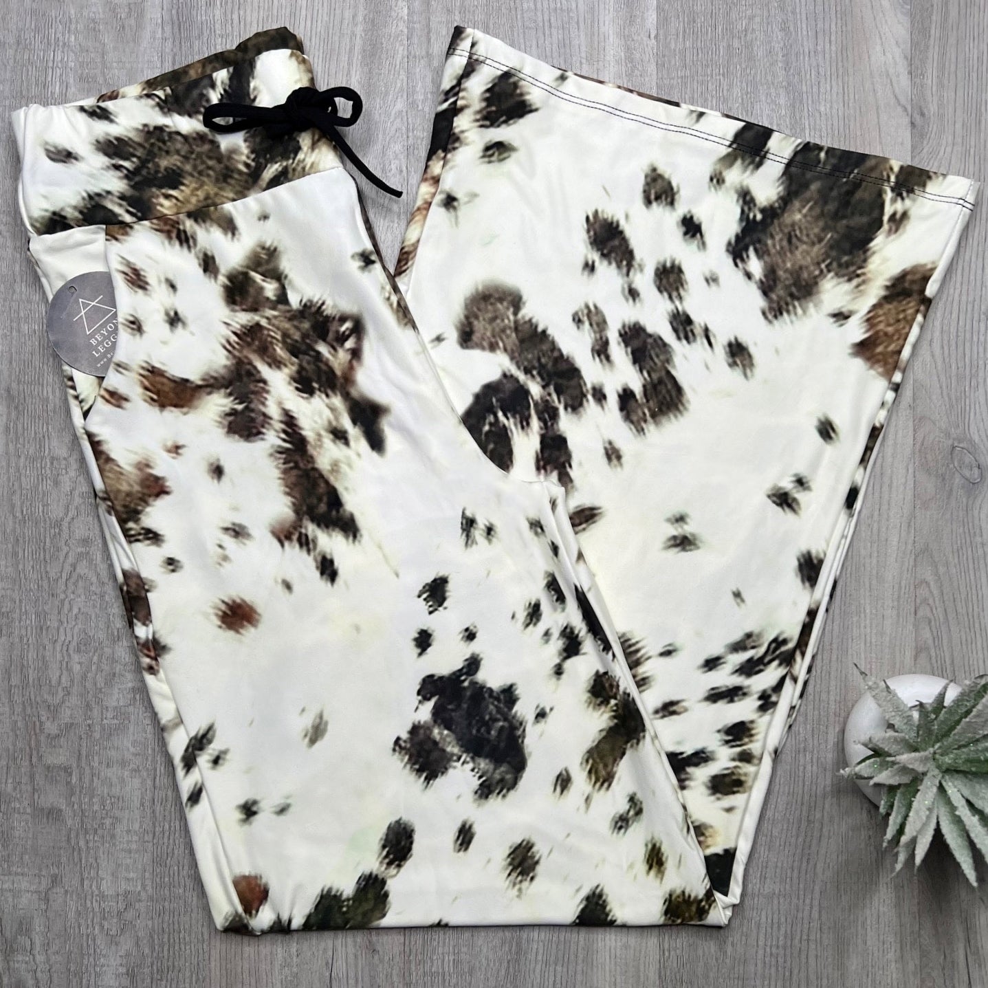 Cow Hide Print - High Waisted Wide Leg Hybrid Leggings/Pants w/ Pockets