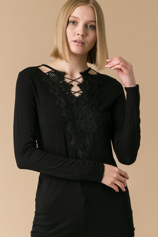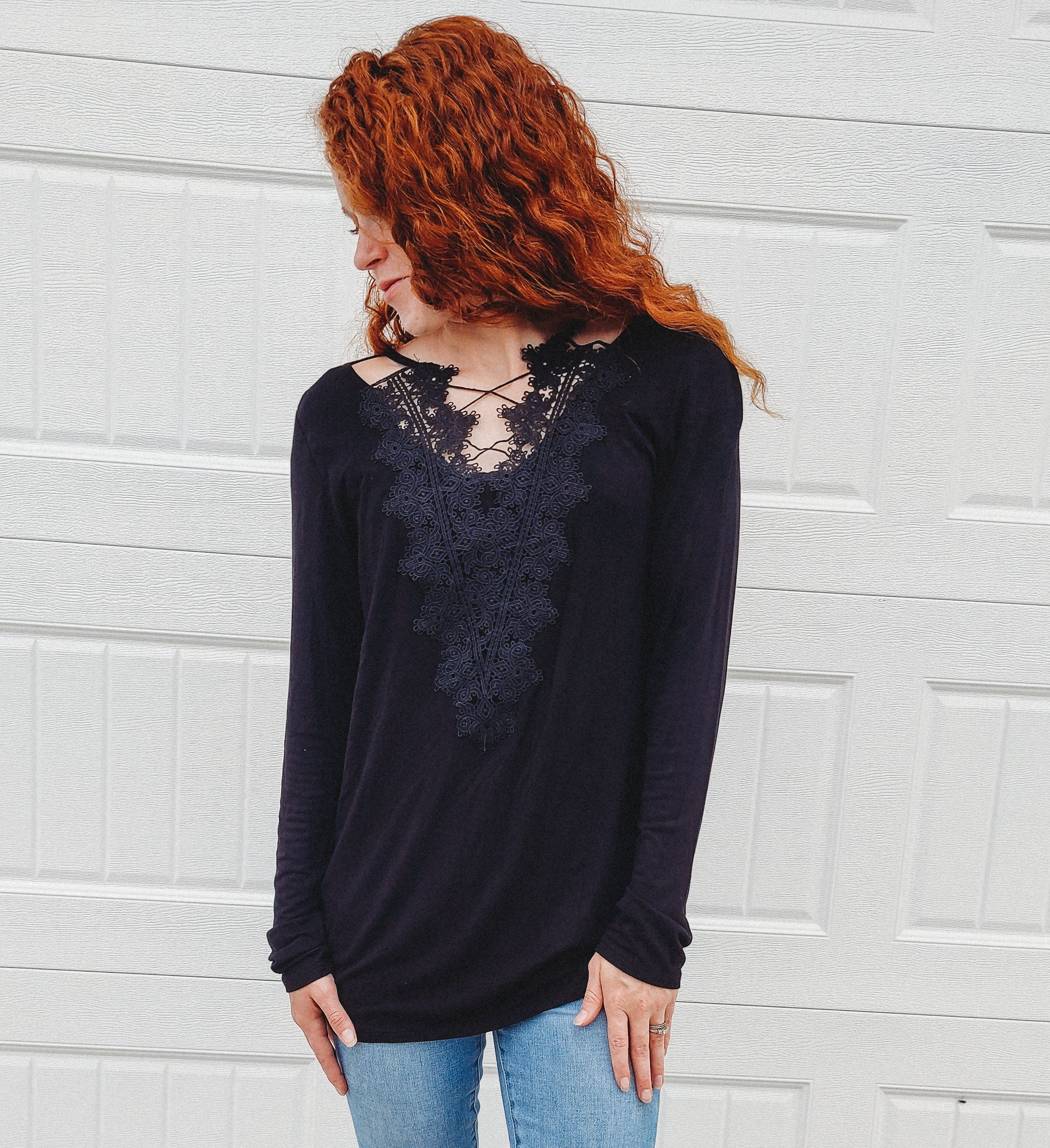 Super lightweight long sleeve with a gorgeous lace detailing down the front.