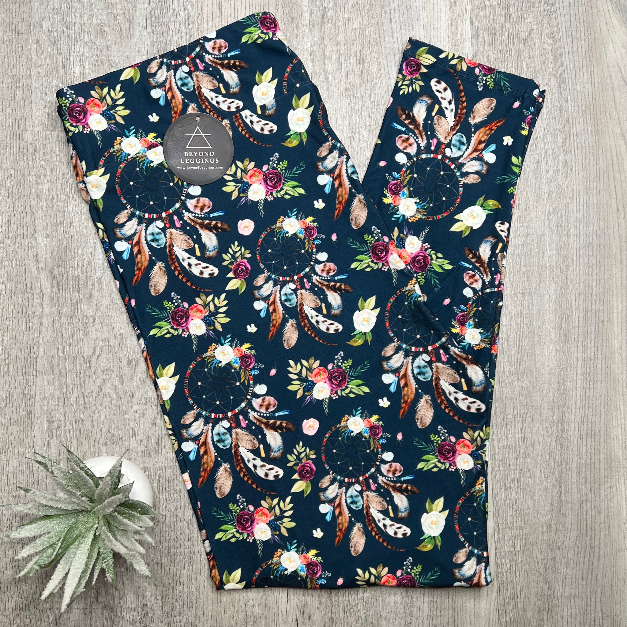 Feather & Crystal Dreamcatcher Print Soft Navy Blue Full Length Leggings - Small Format