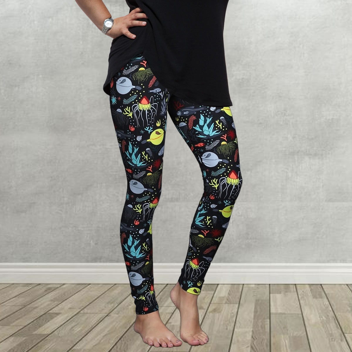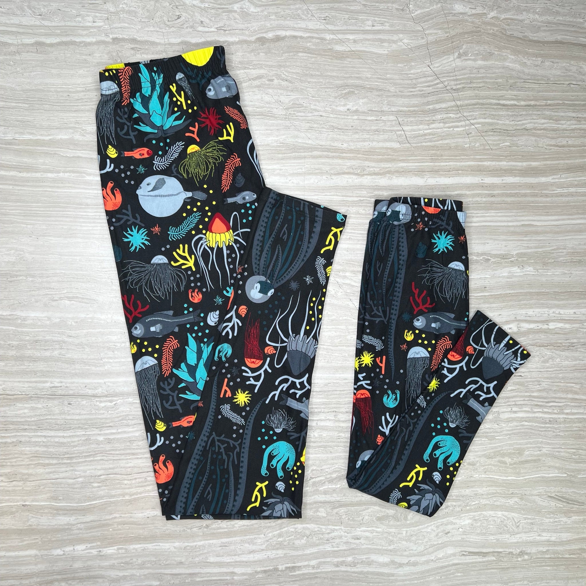 Deep Sea Fish Print Leggings - Adult & Kid Sizes
