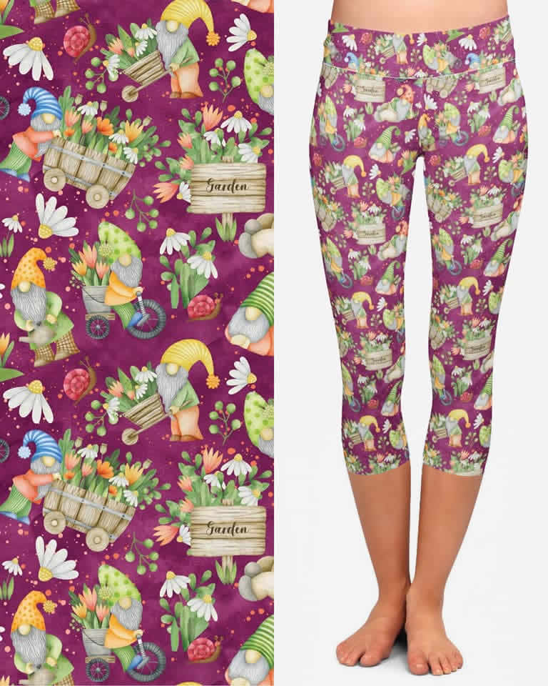 Gardening Gnome Print Capri Soft Magenta Pink Leggings w/ Pockets